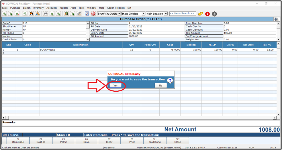 Steps to Edit Purchase Order, do the following steps.