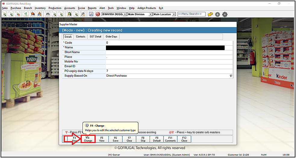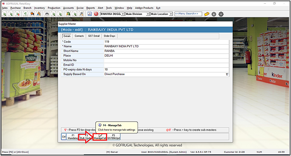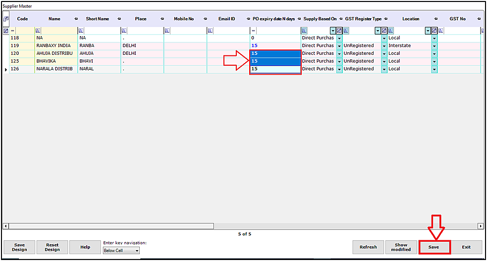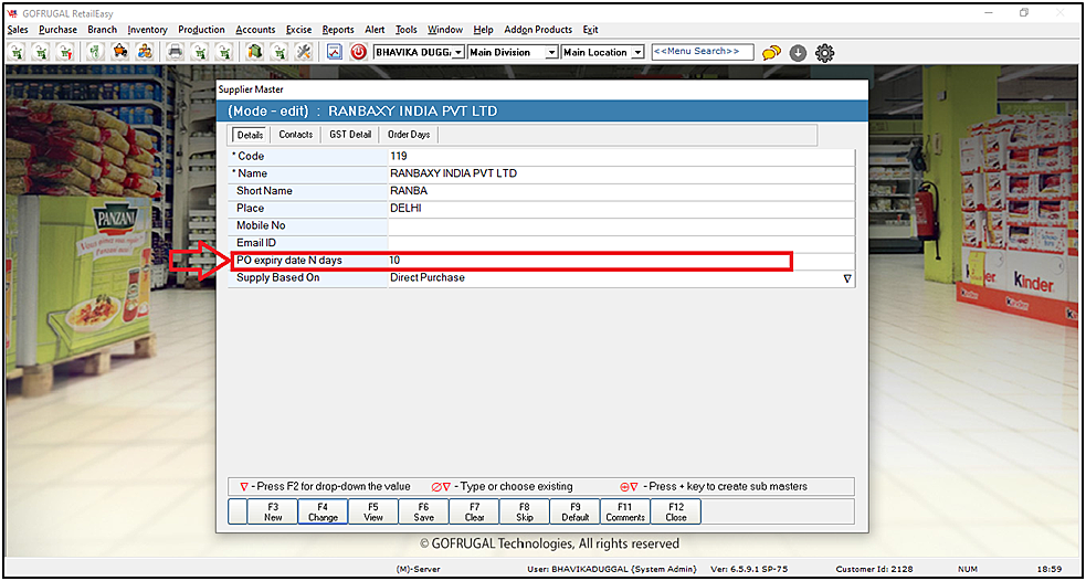 Step 4: Then click on the Order Days and out the desired value in the "PO Expiry (in Days)" field and then click on F6 Save to save the settings.