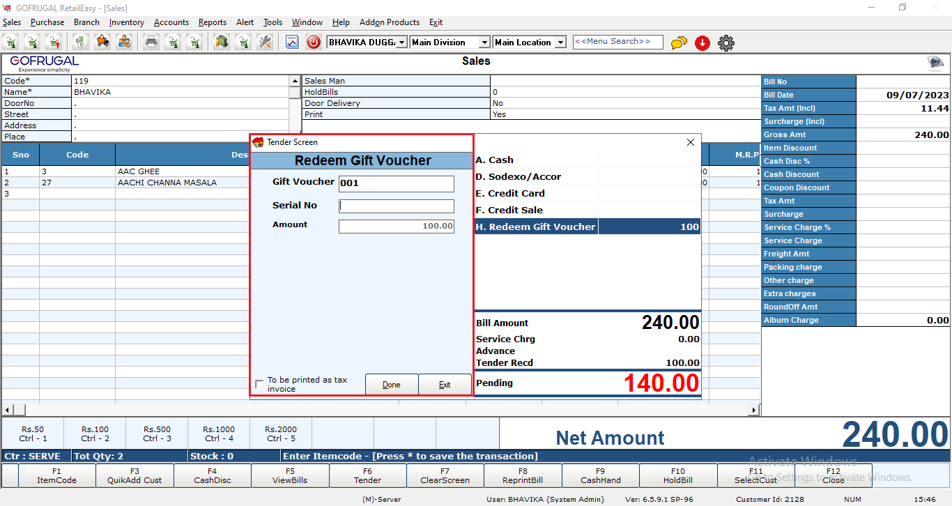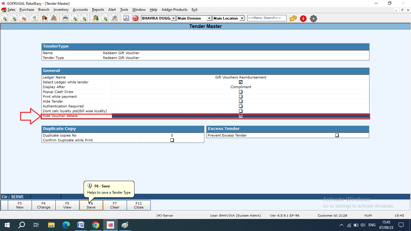 Hide Gift Voucher Serial Details in Tender