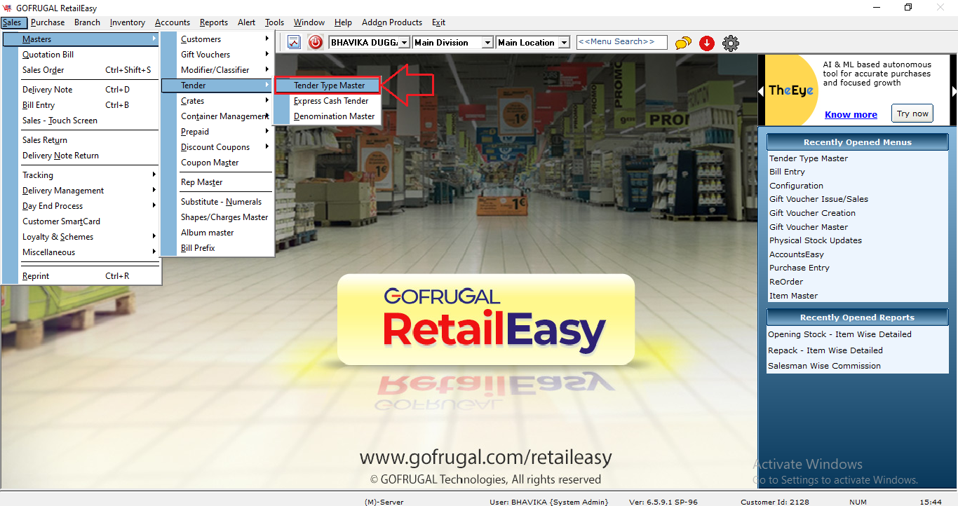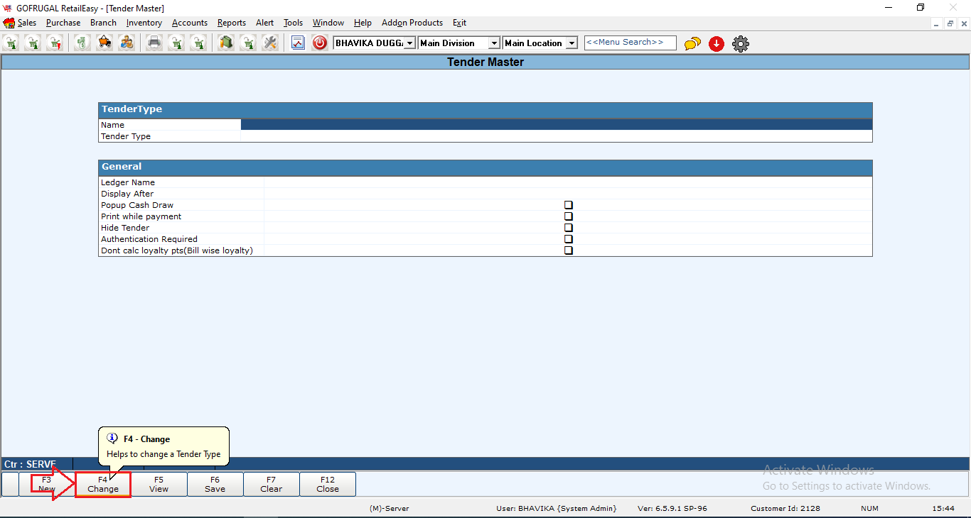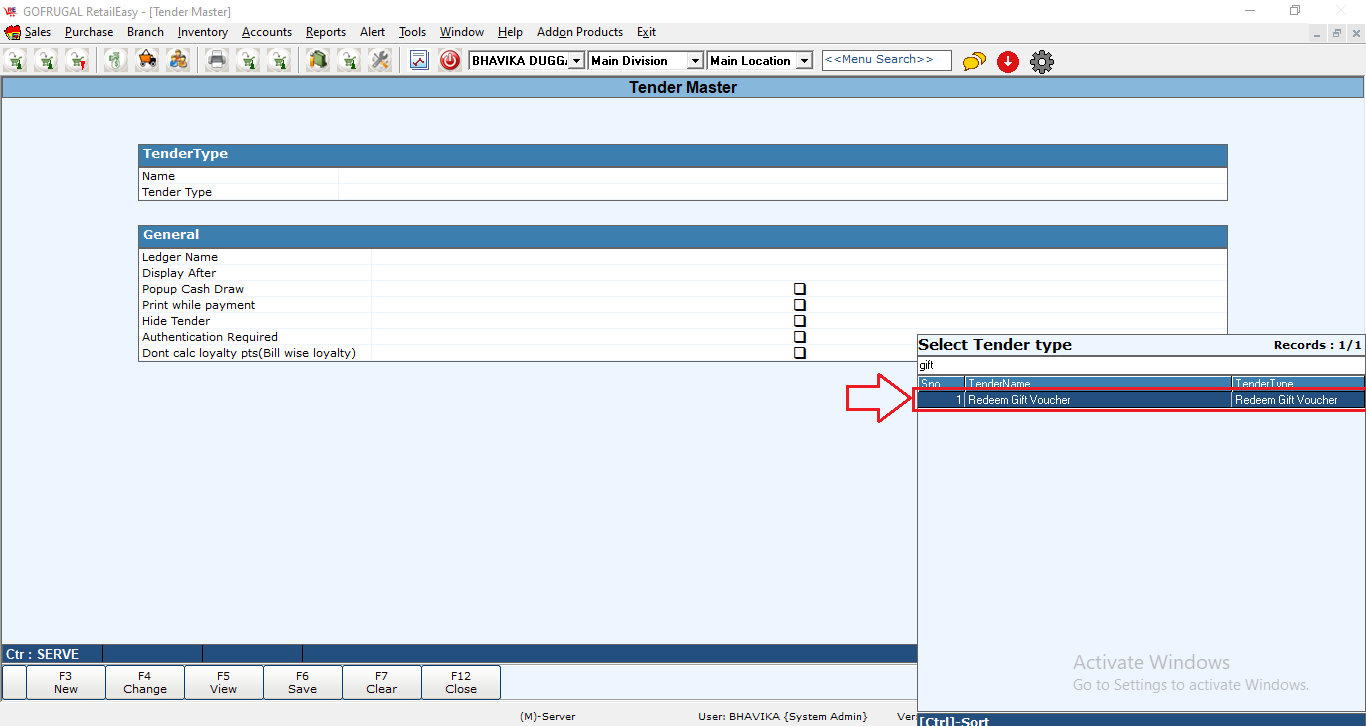 Step1: Go to Sales > Masters > Tender > Tender Type Master.