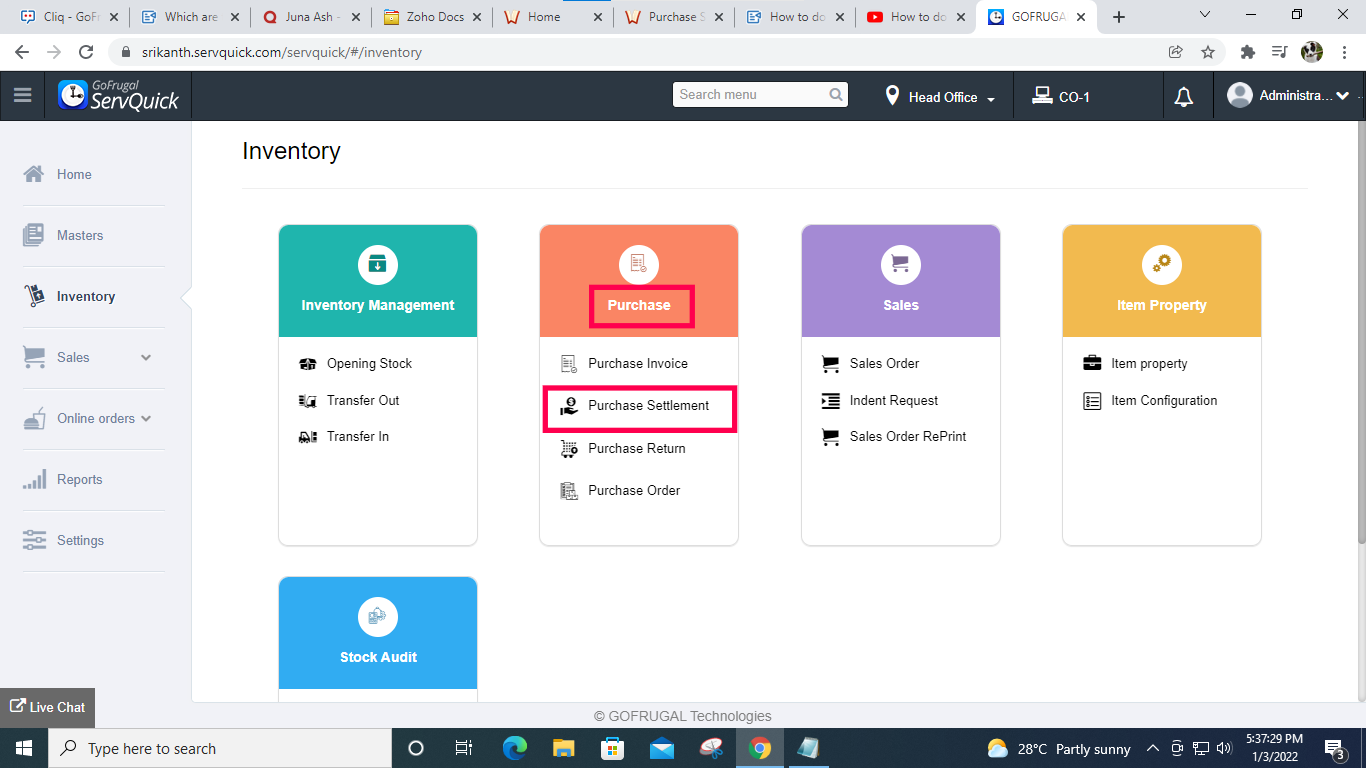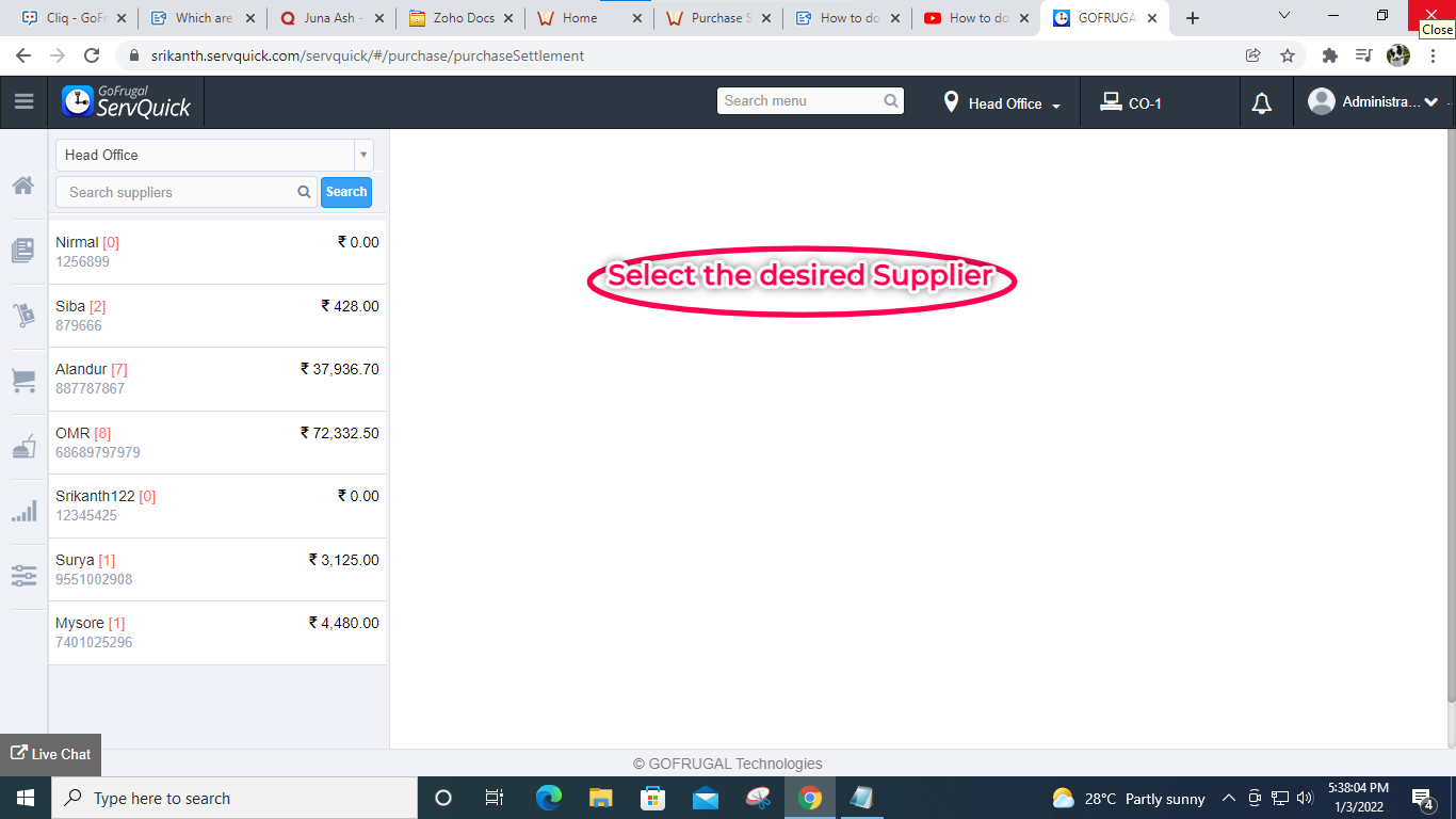 Steps for Purchase Settlement in ServQuick