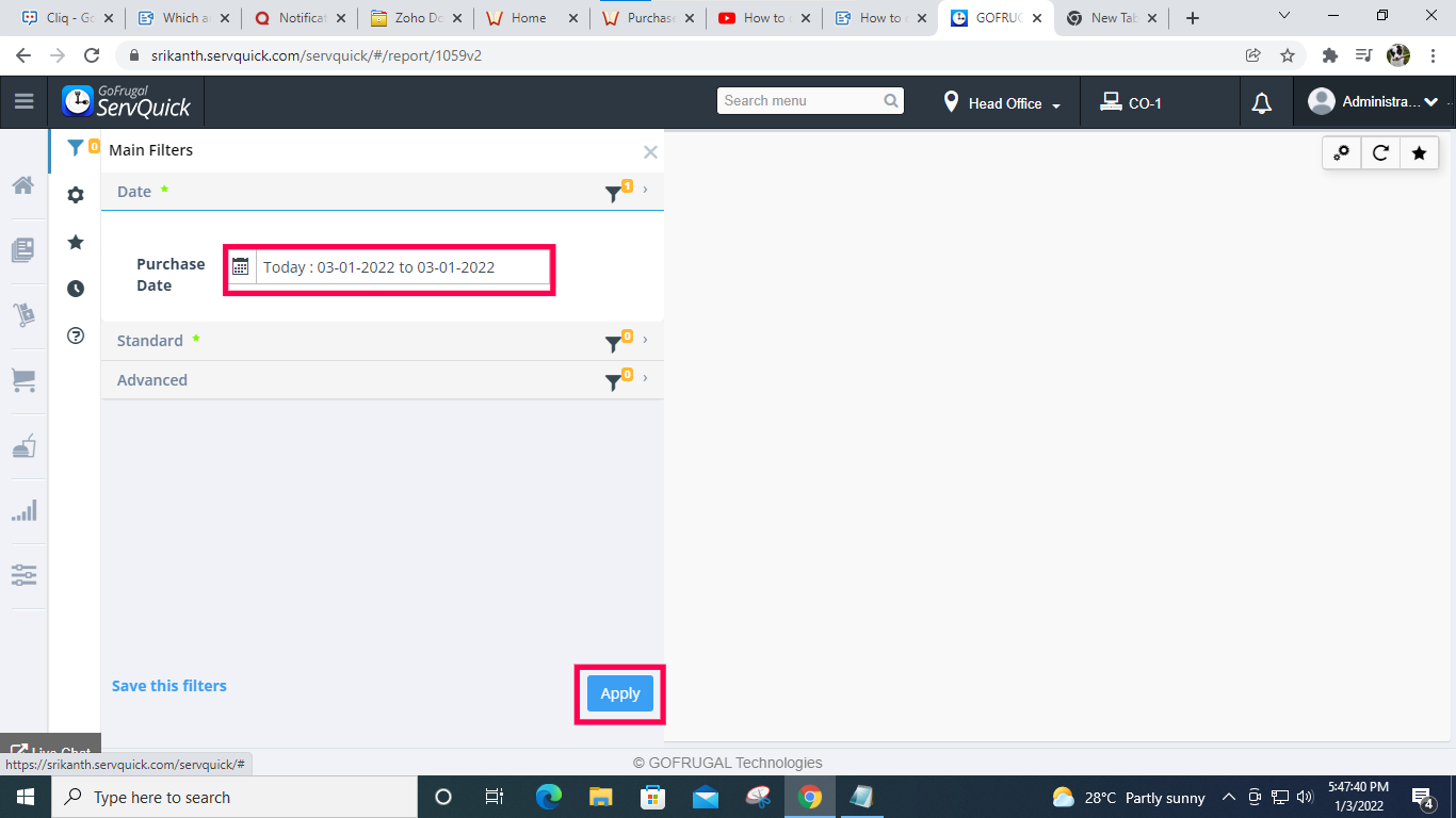 Step8: Filter the date > click on Apply