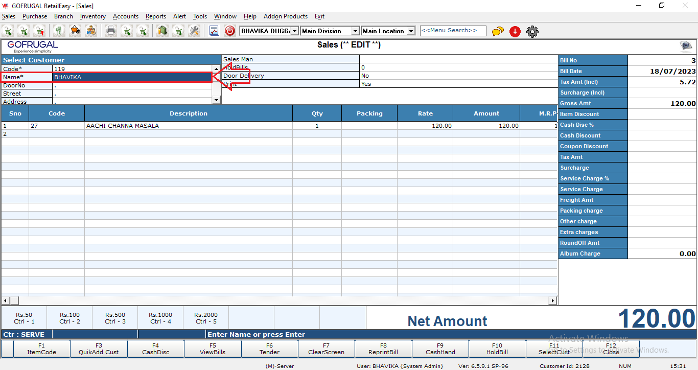Business Scenario: There can be many scenarios when your user has unintentionally saved a sale bill for another customer instead of the real one. So in this case you might have need to edit the bill & update your records. Similarly, if you want to edit the quantity of any item, change the tender type of the bill etc. These all changes can be done by editing a sale bill.