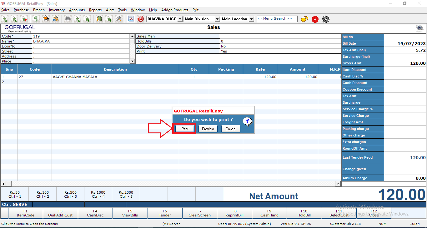 Step2: After saving the transaction, the application will ask you to print ave the transaction where you need to select 'Print' to print the transaction.