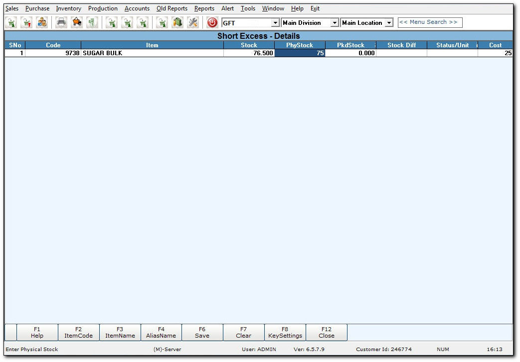 - Click PhyStock. Enter the quantity and press ENTER.