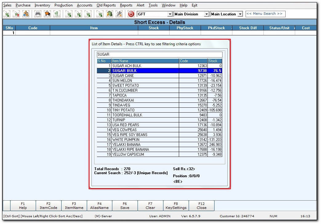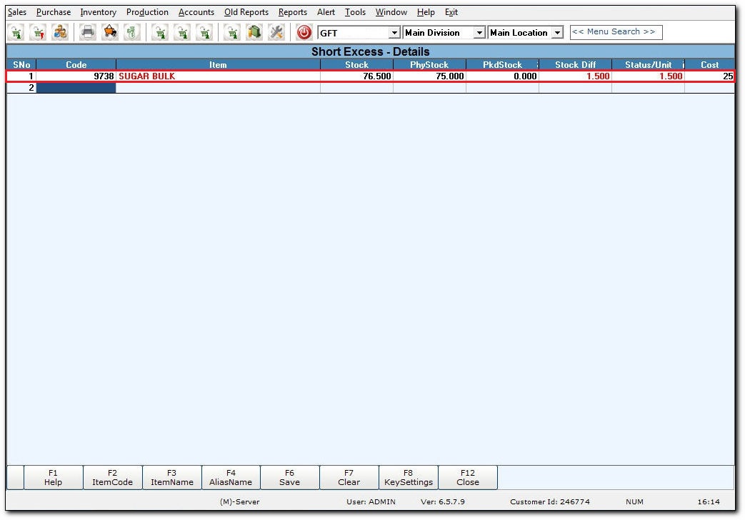 Short excess keeps the details of available bulk items. It helps in tracking the existing stock and packed stock details. Stock difference shows the difference between the stock and physical stock. The packed stock gives the detail about the number of packed stock.