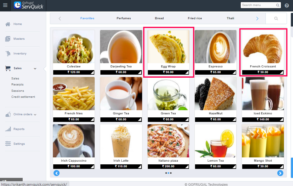 The cost of the modifier is automatically added to the sales bill while choosing the item.
