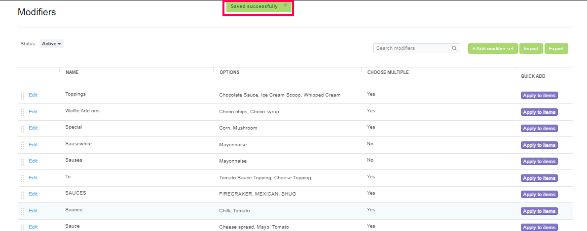 The list of all modifiers will be shown. To create a new modifier, click on Add modifier set.