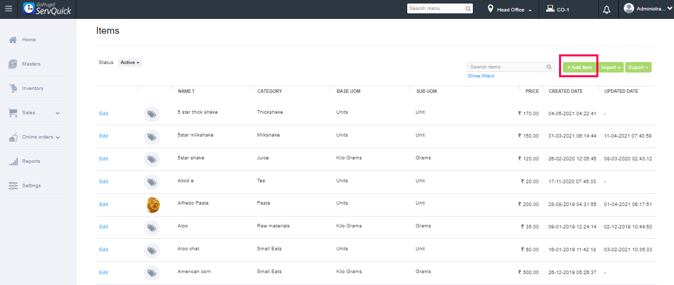A Variant is a difference in quantity in which the item is sold or purchased. An item can have different variants. For example, Pizza can have three variants like Regular, Medium, and Large, based on the number of pieces it contains. Similarly, variants can be created for all items.