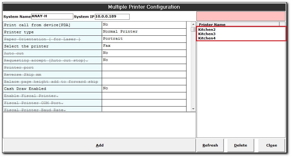 - The Multiple Printer Configuration screen is displayed.