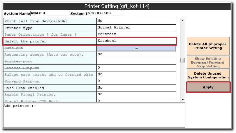 - In the Select the Printer field, click select the printer field. A list of Available Printers are displayed, select the printer.