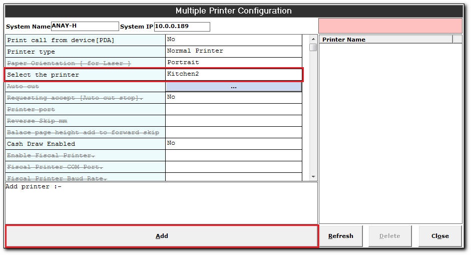 - Click Add to add the secondary printer. The Printer Name displays the added printers' name.