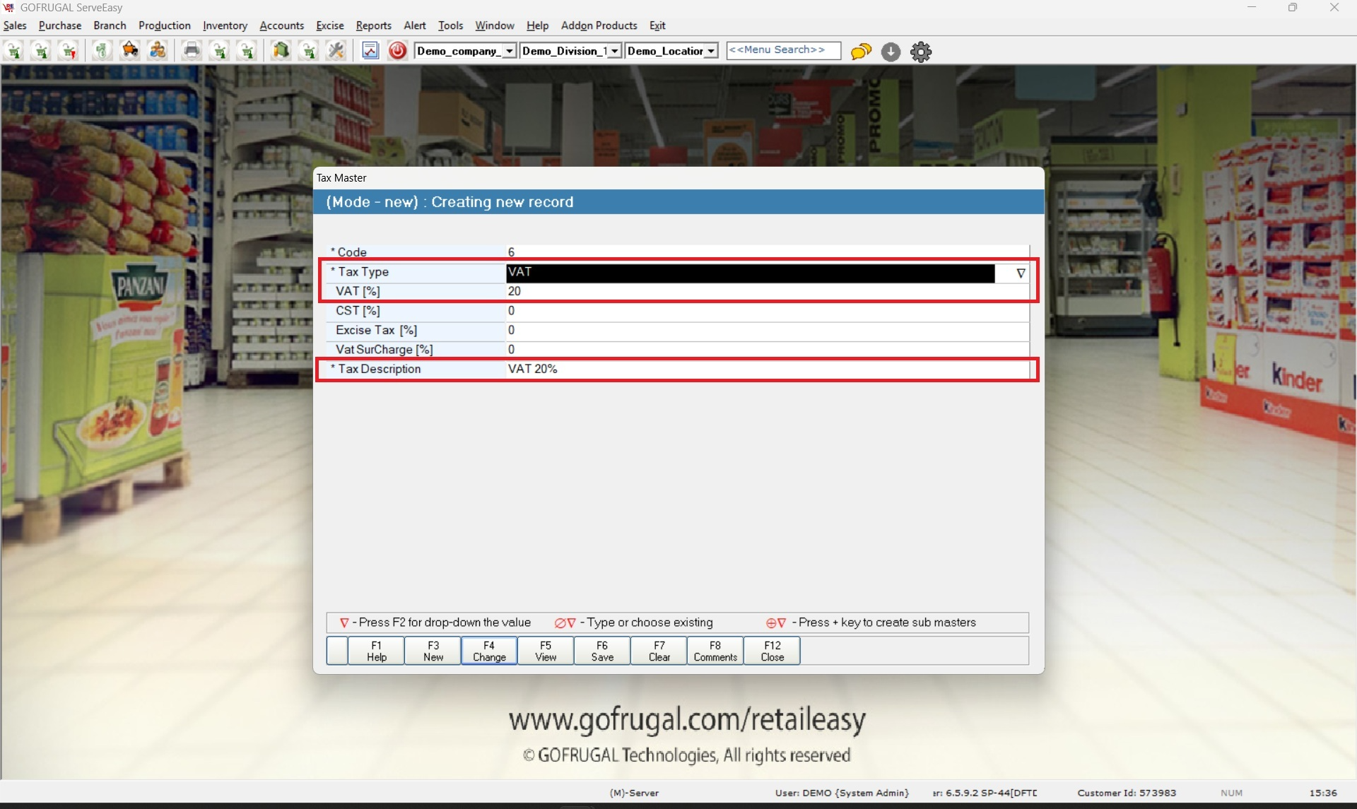 Select the Tax Type from the dropdown (e.g., "CST," "VAT").