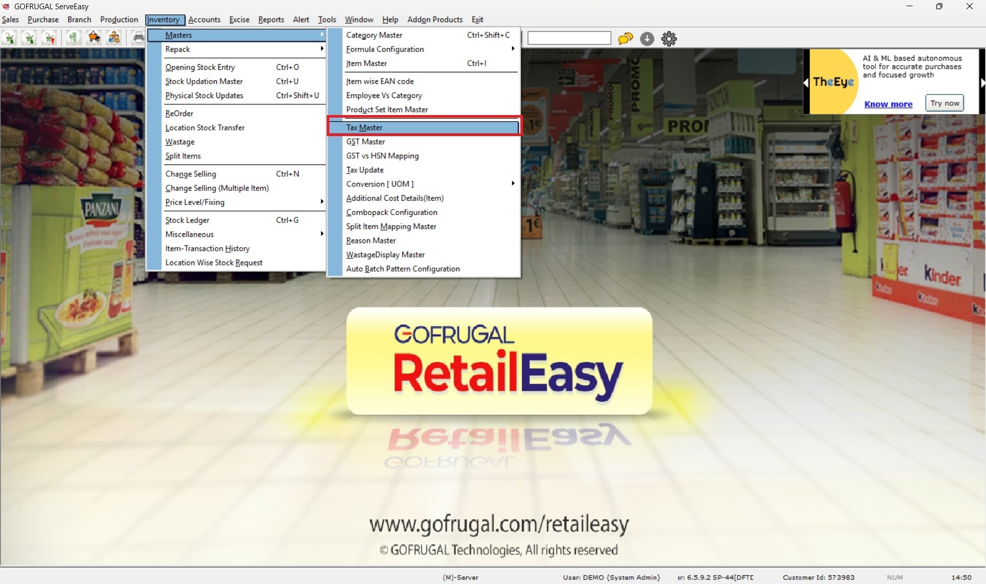 In the Master section, click on Tax Master to open the tax configuration interface.