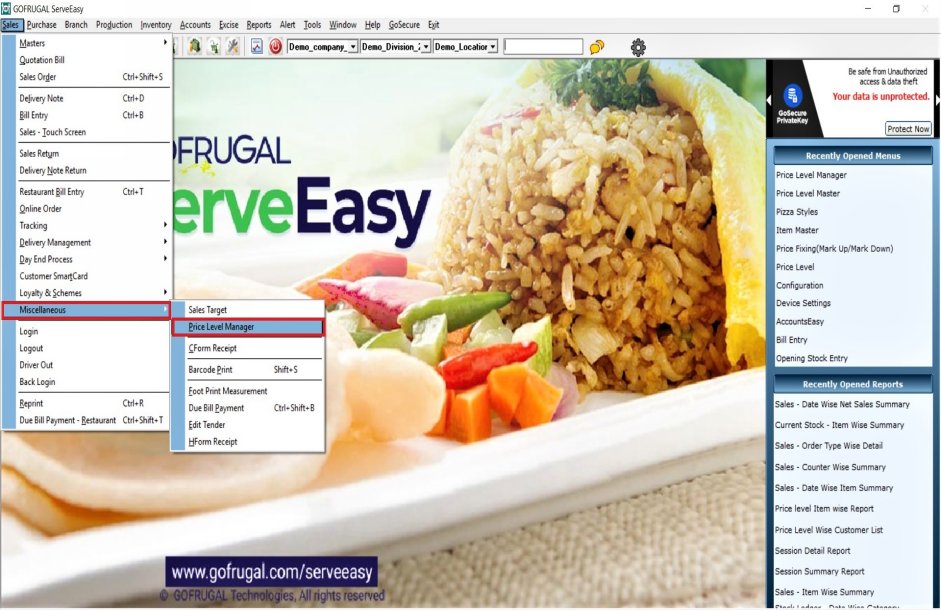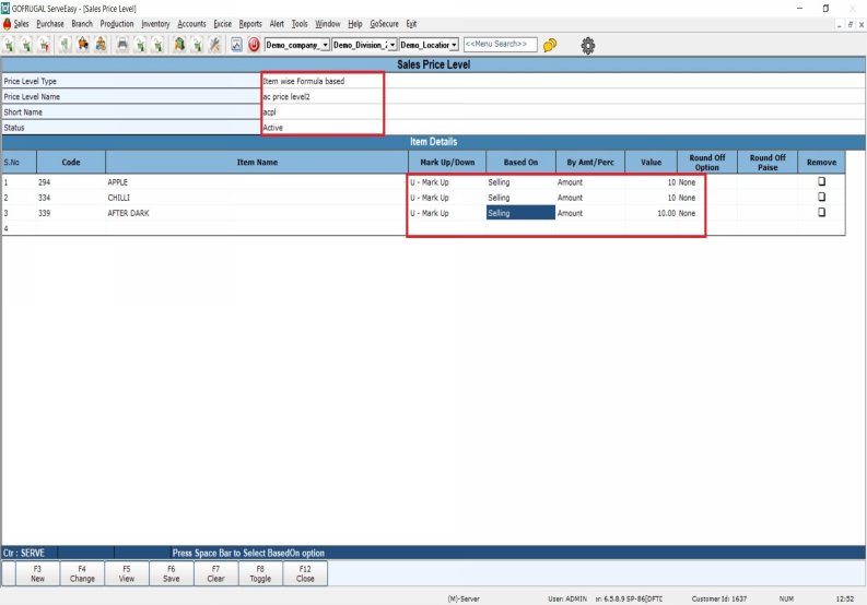Consider a restaurant having both Ac and Non Ac sections if the restaurant owner wants to increase the selling rate of the items that are served in ac section so in such case he can use price level feature