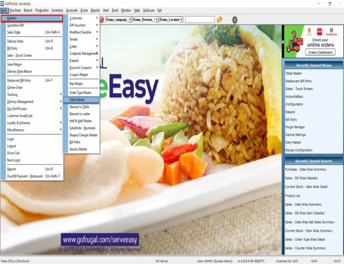 First Go to Sales> Masters> Table Master