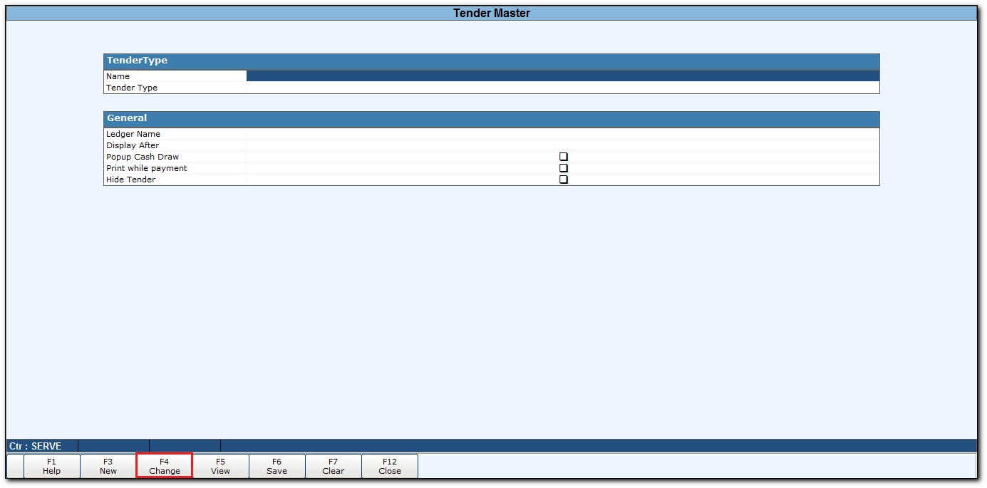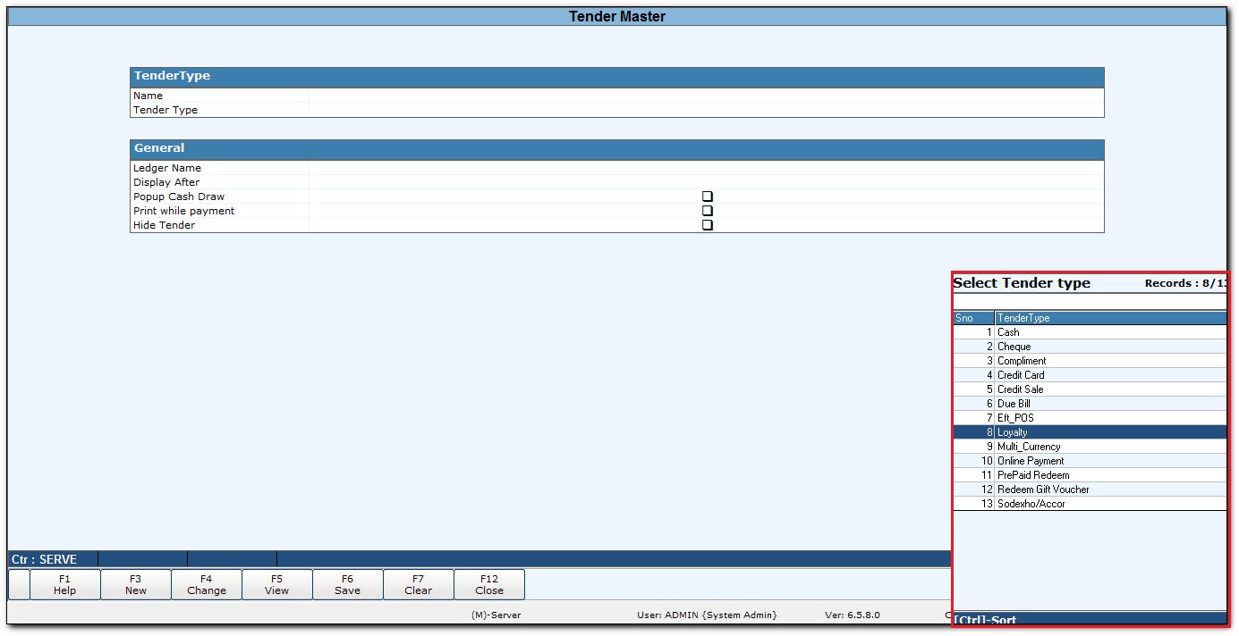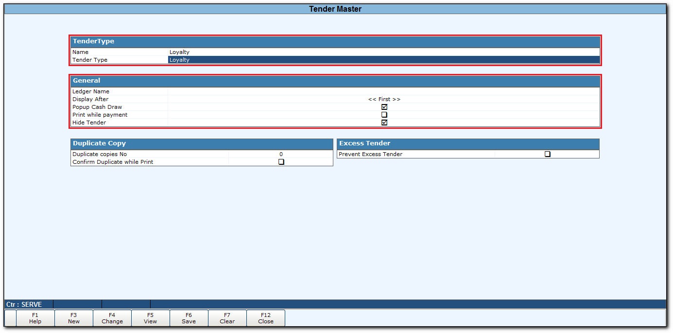 - Select Loyalty. By default the fields of Tender Type and General gets filled.