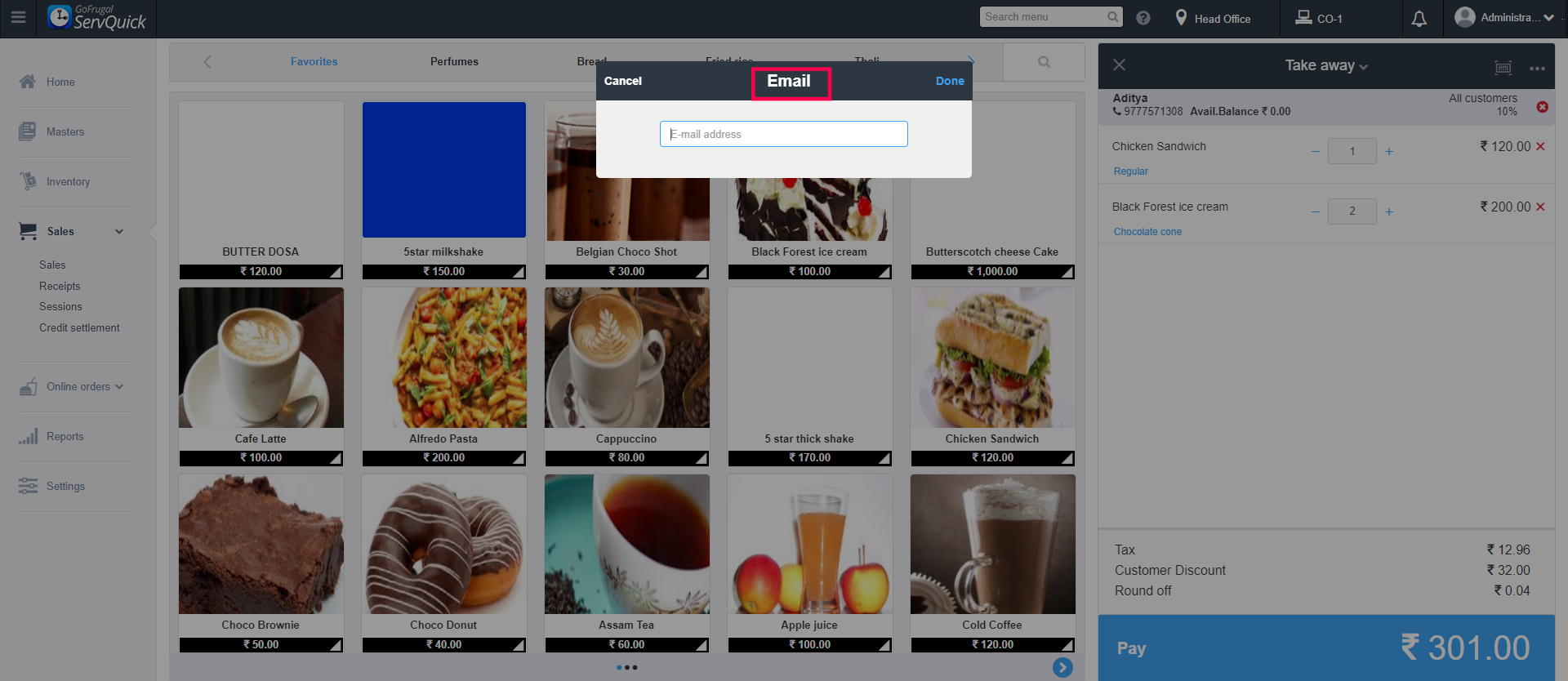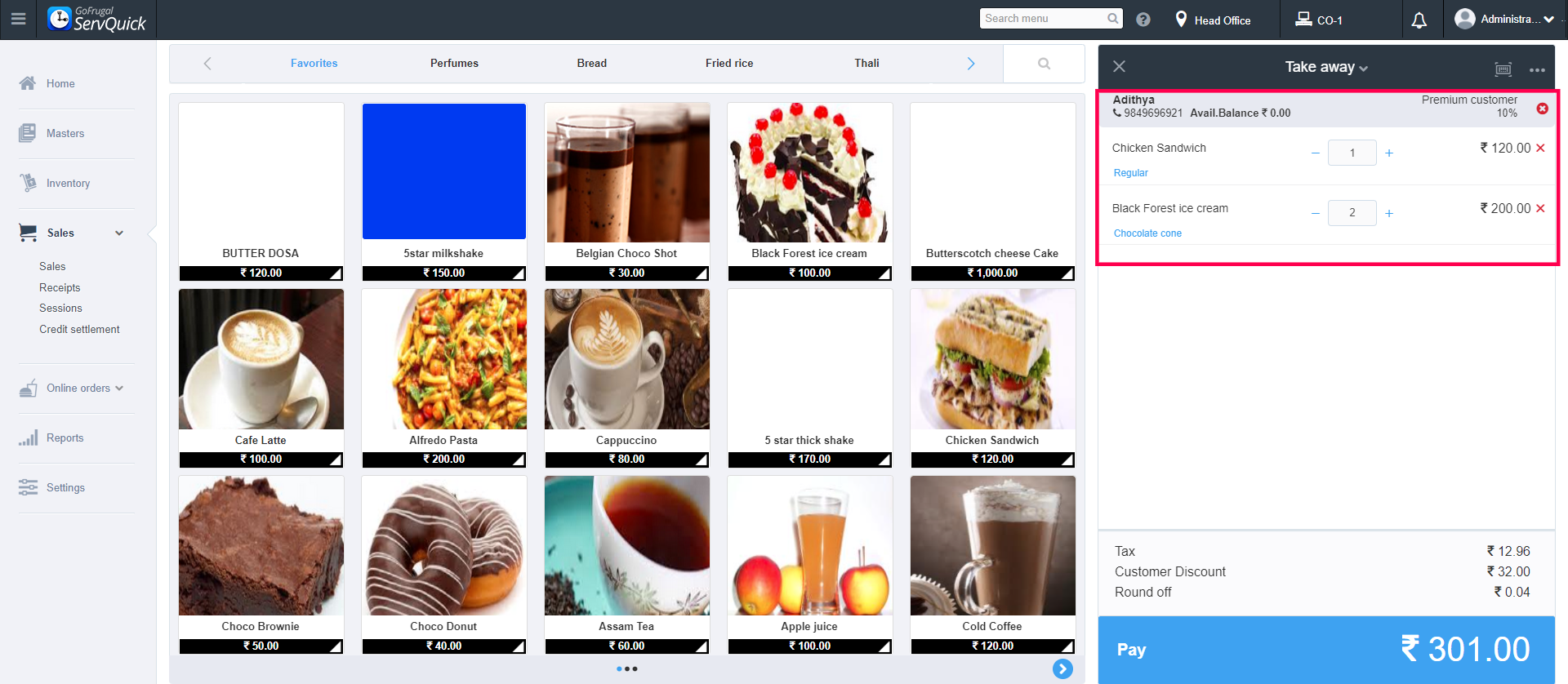 Step 4: Add the items list the customer wants to order in advance. For eg: I have selected Black Forest Ice-cream Cake and Chicken Sandwich