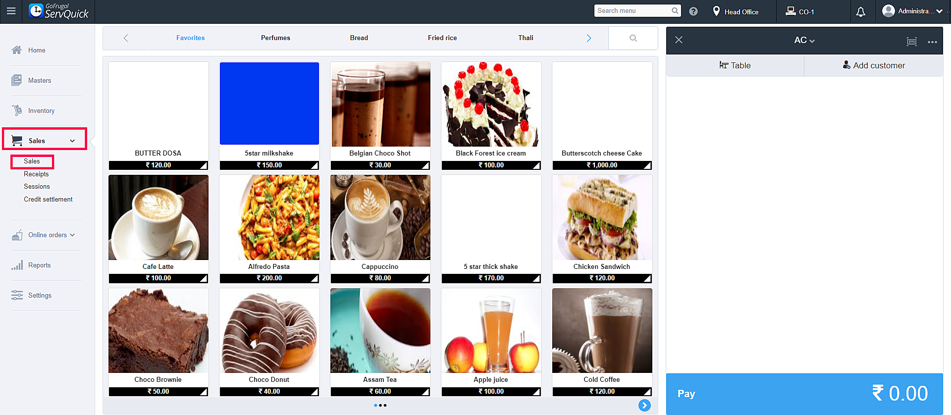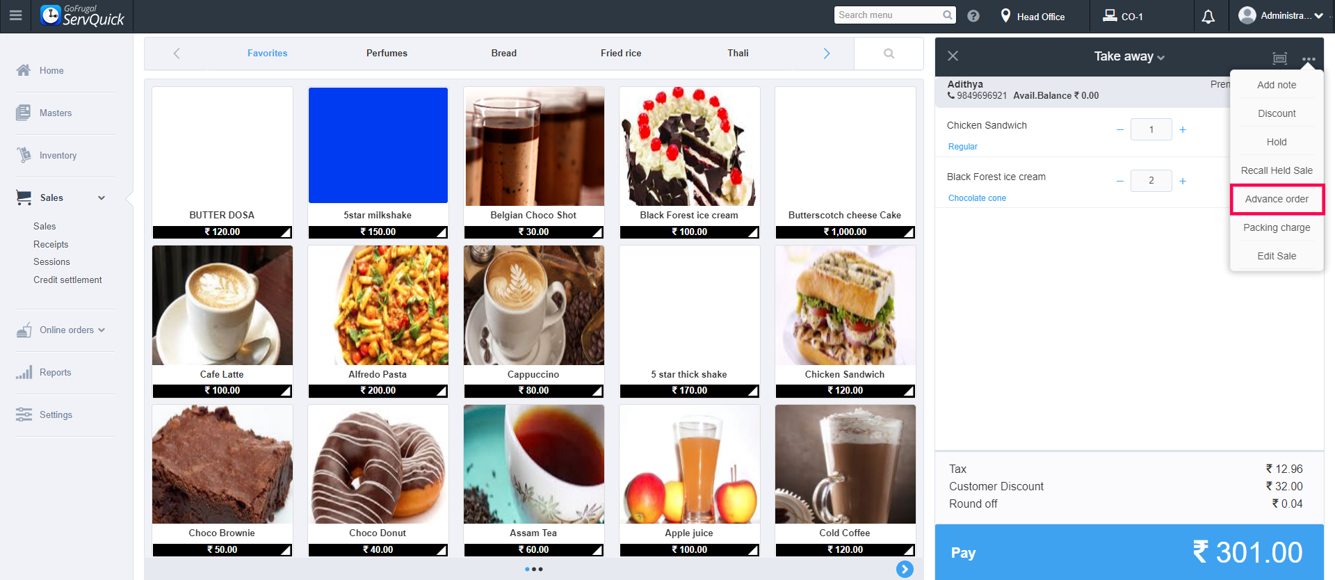 Steps to create an advance order in ServQuick