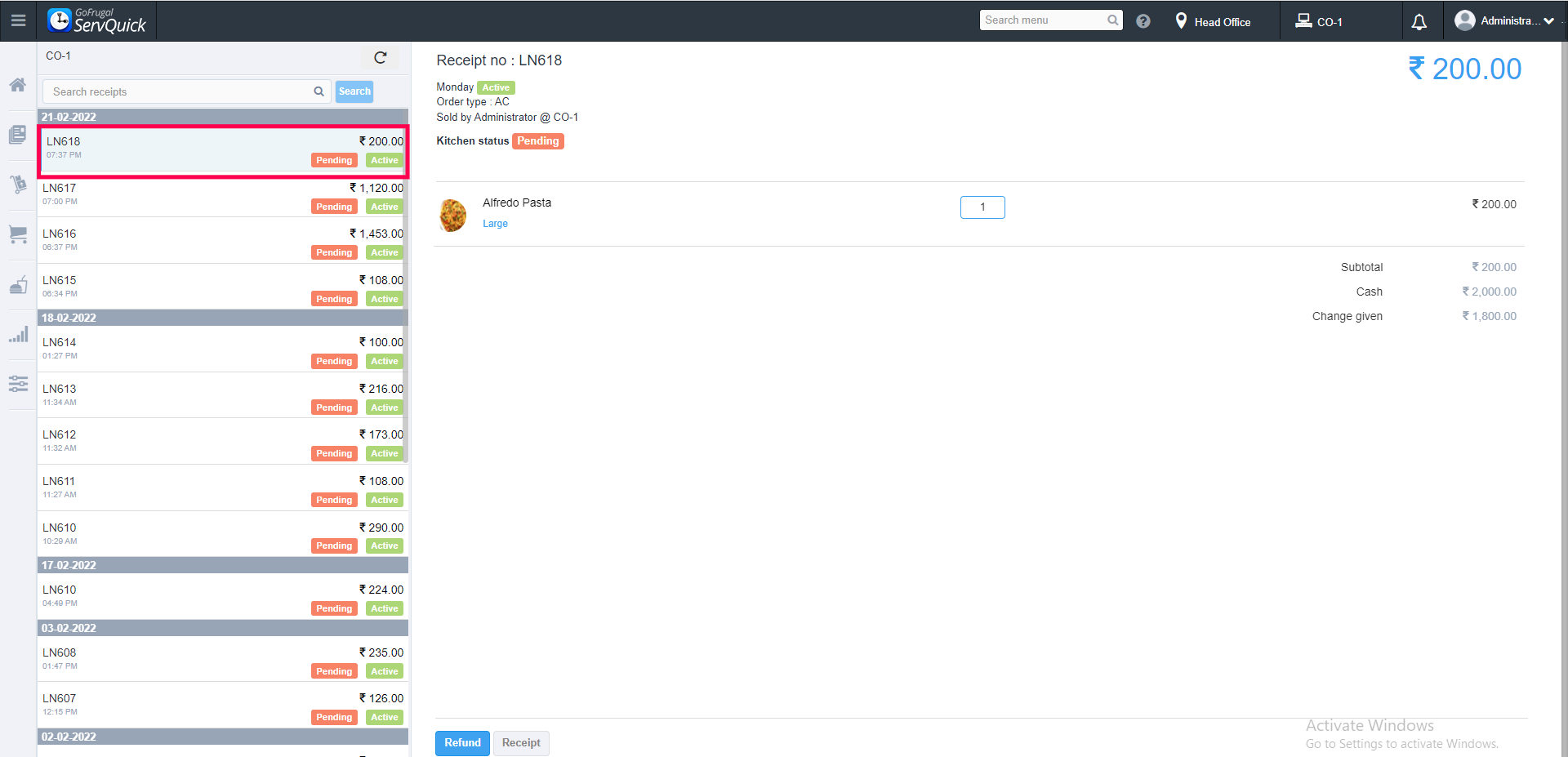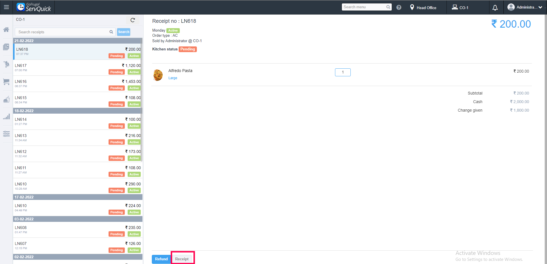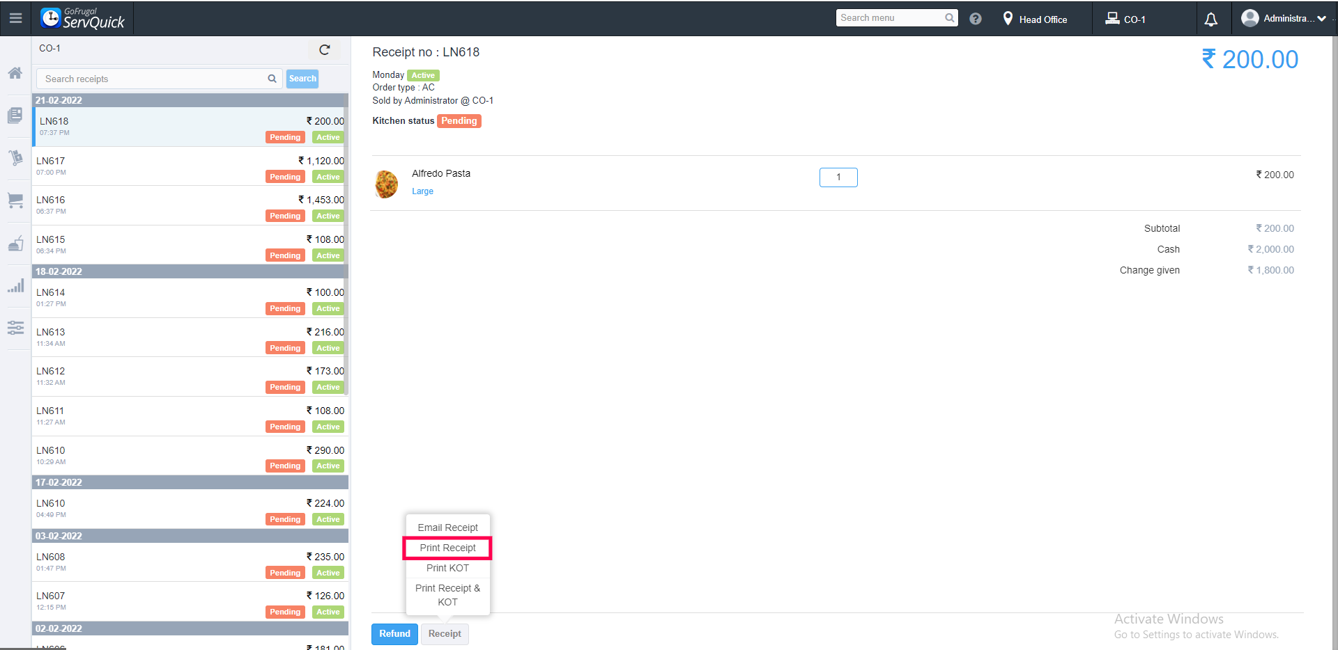 This Print Receipts feature helps to take print of the receipts billed for the customers. It can help you keep track of the payments from customers.