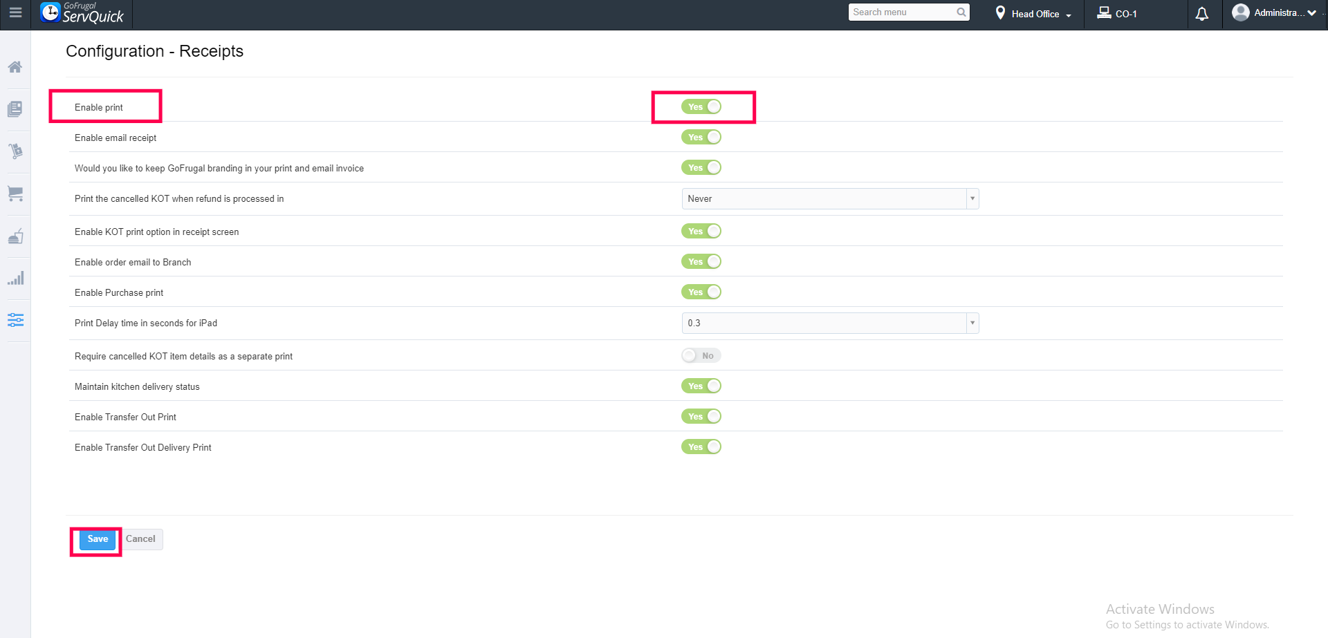 Step2: Click 'Yes' on the Enable Print option and click on Save