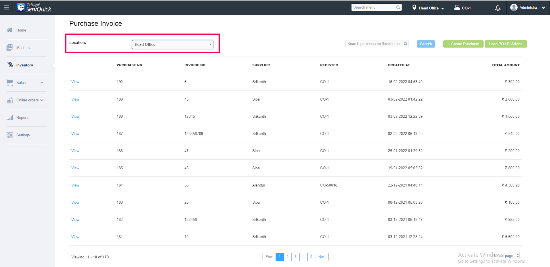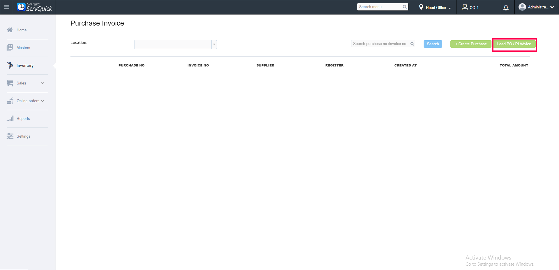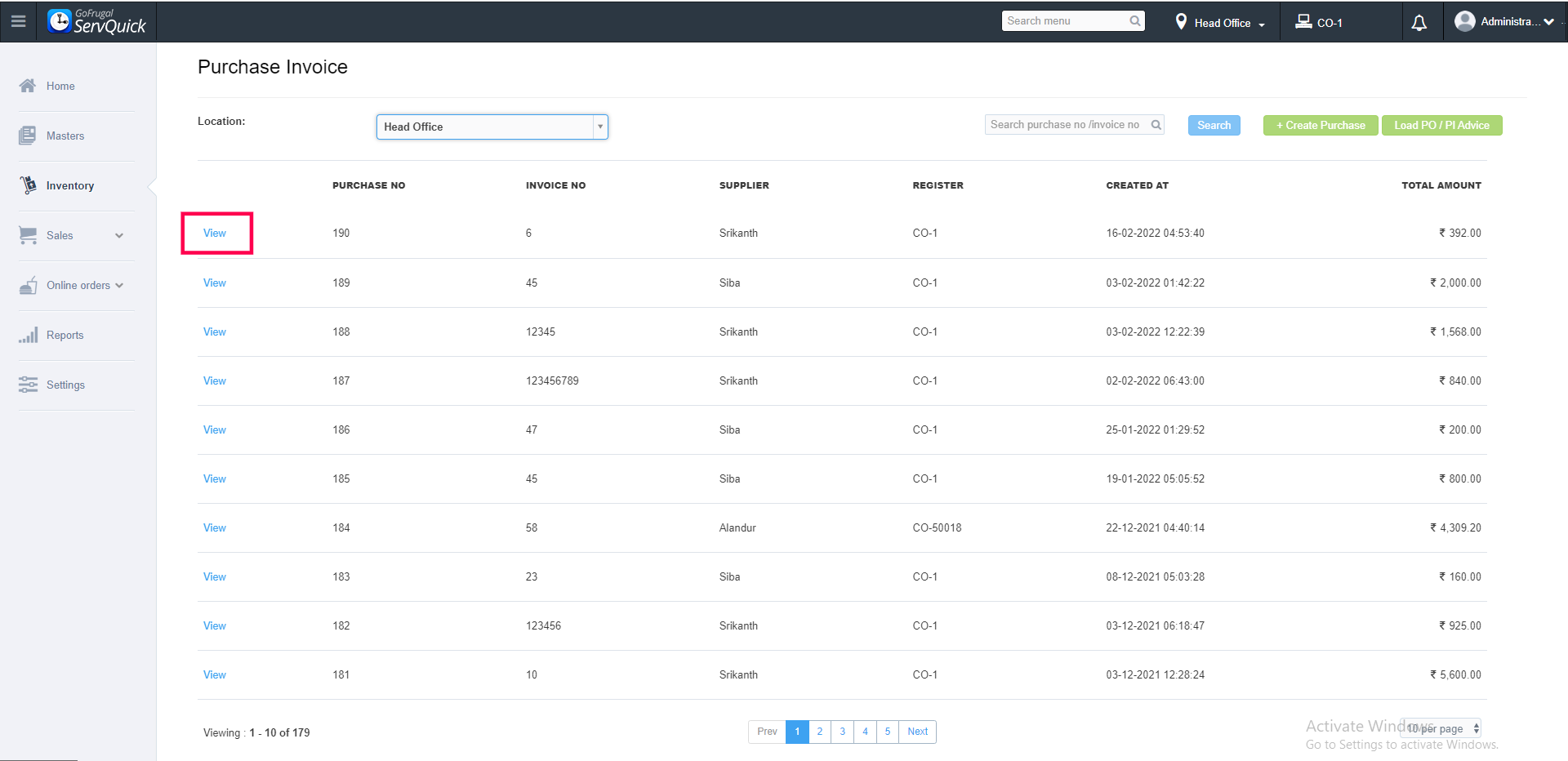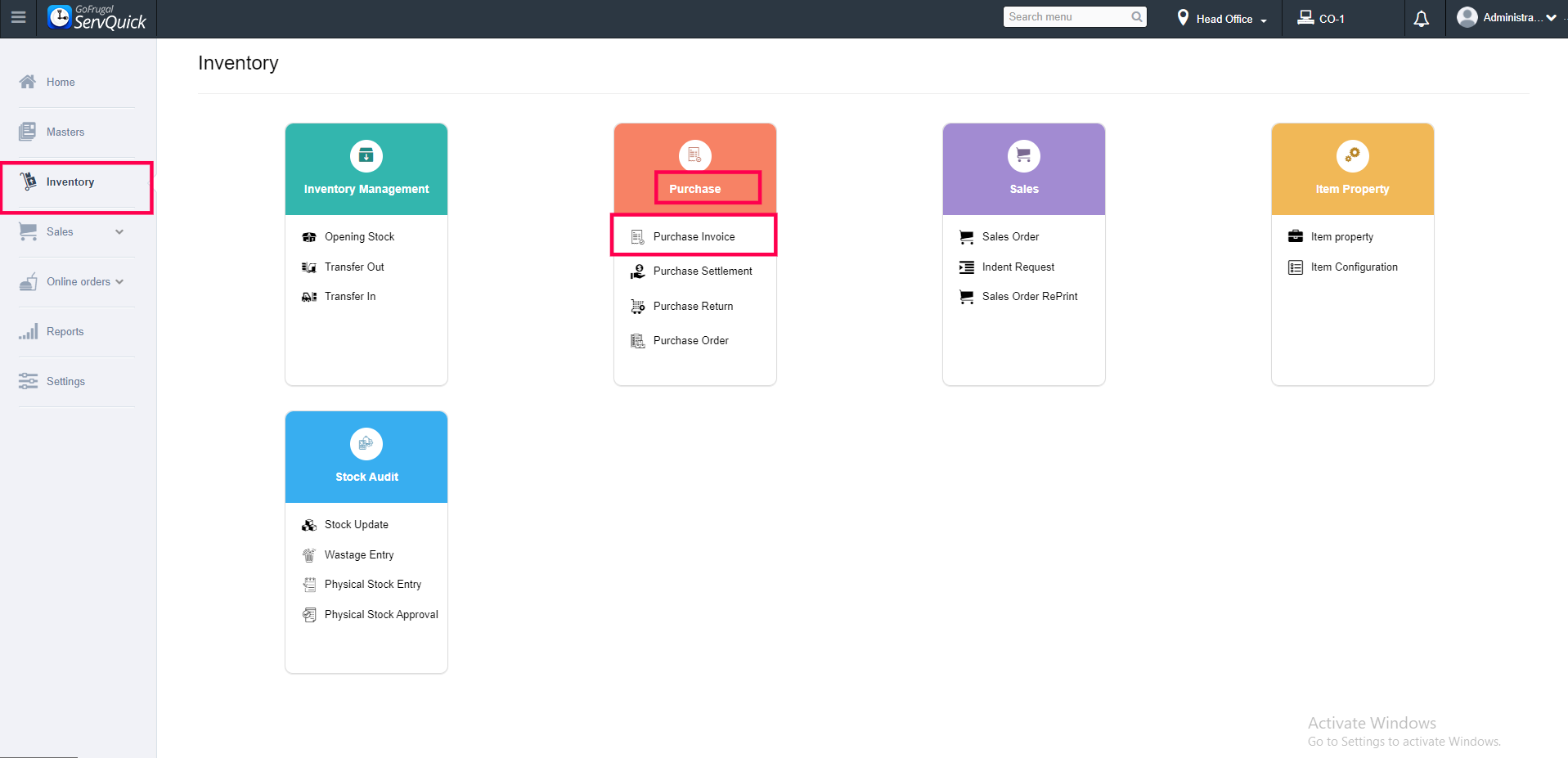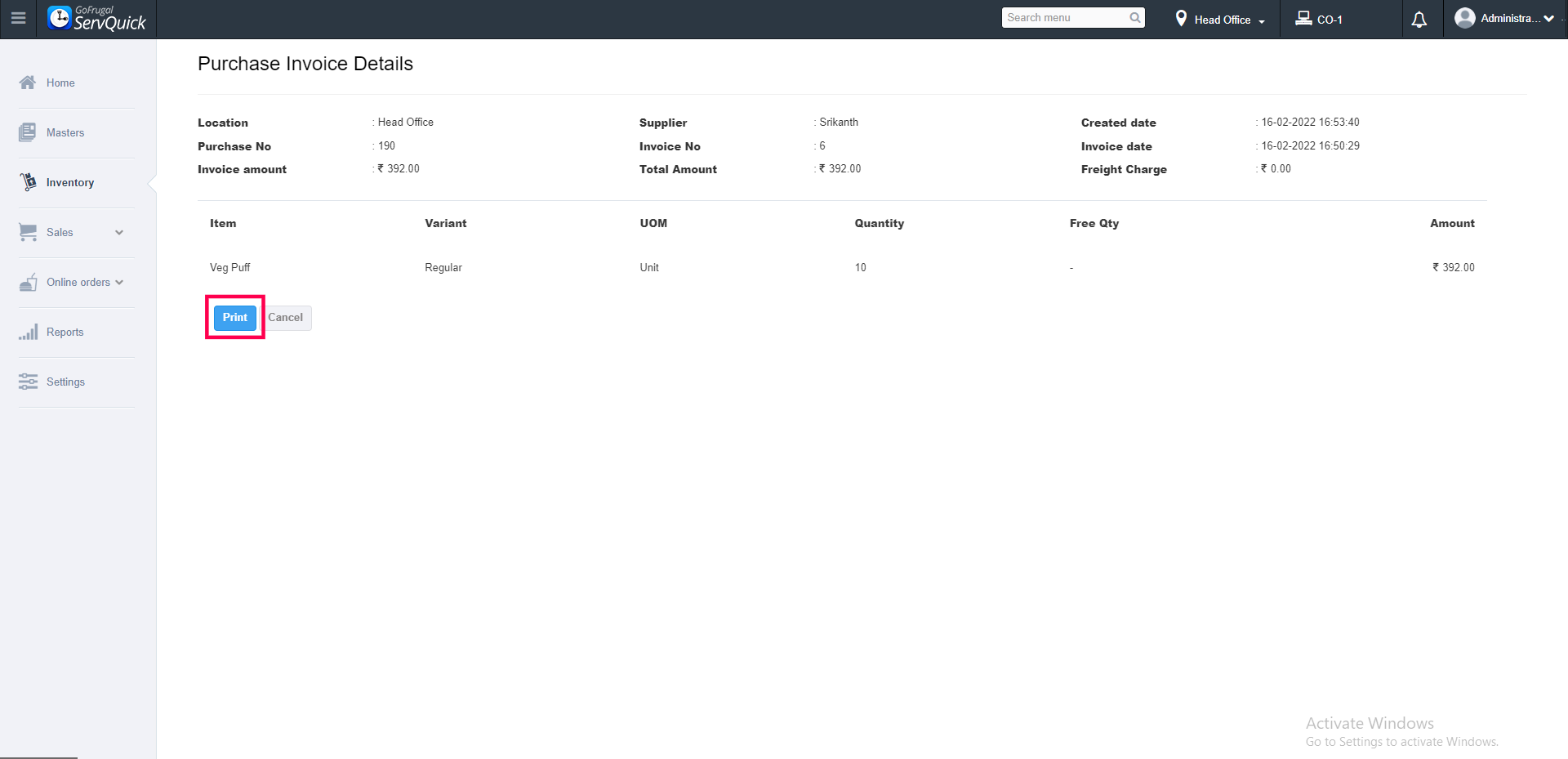 Steps to receive Purchase Invoice from Franchise outlet in ServQuick