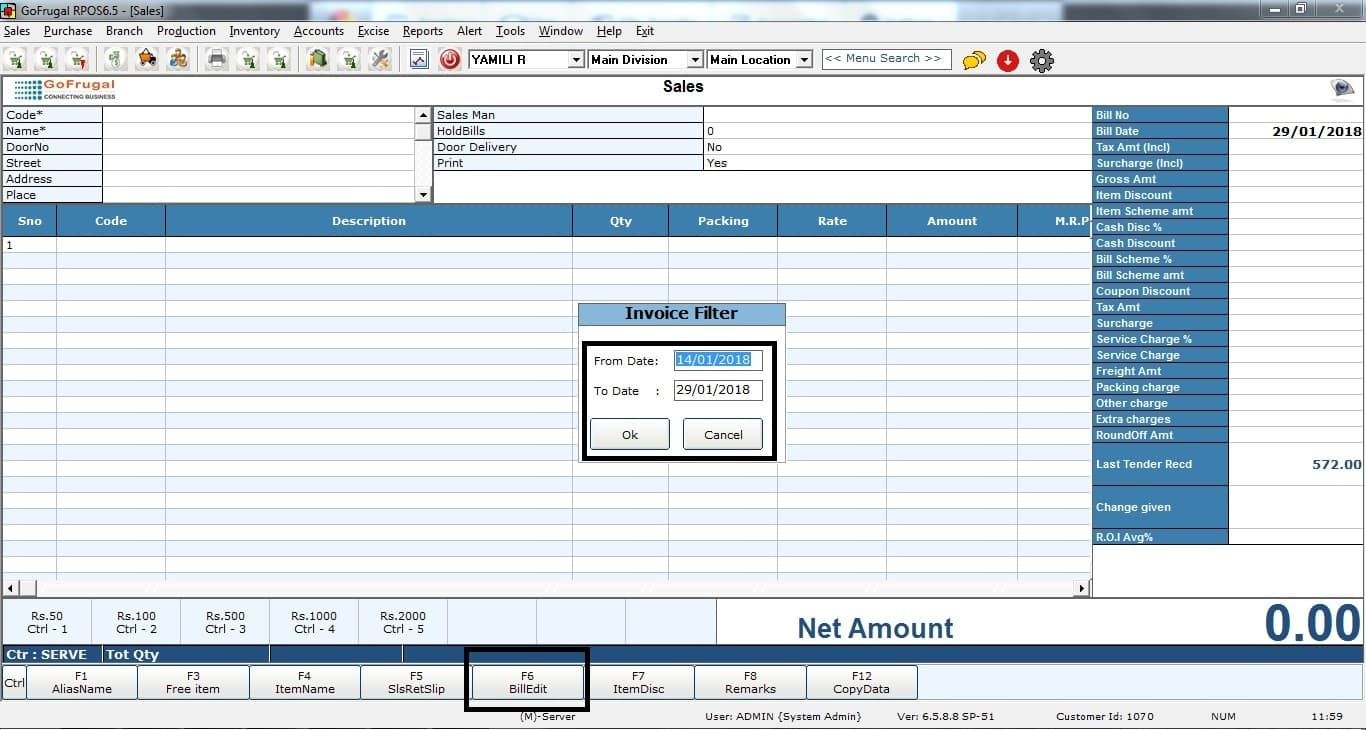 First, decide which date the skipped bills belong to. This will be the date for which you are entering backdated sales bills.