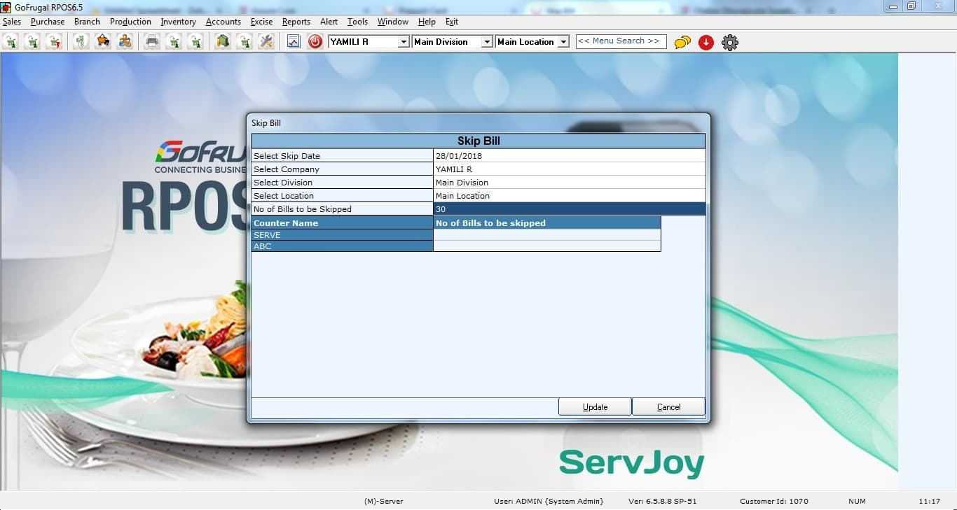 If necessary, allocate the skipped bills to specific counters. This will help keep track of sales by different counters in the system.