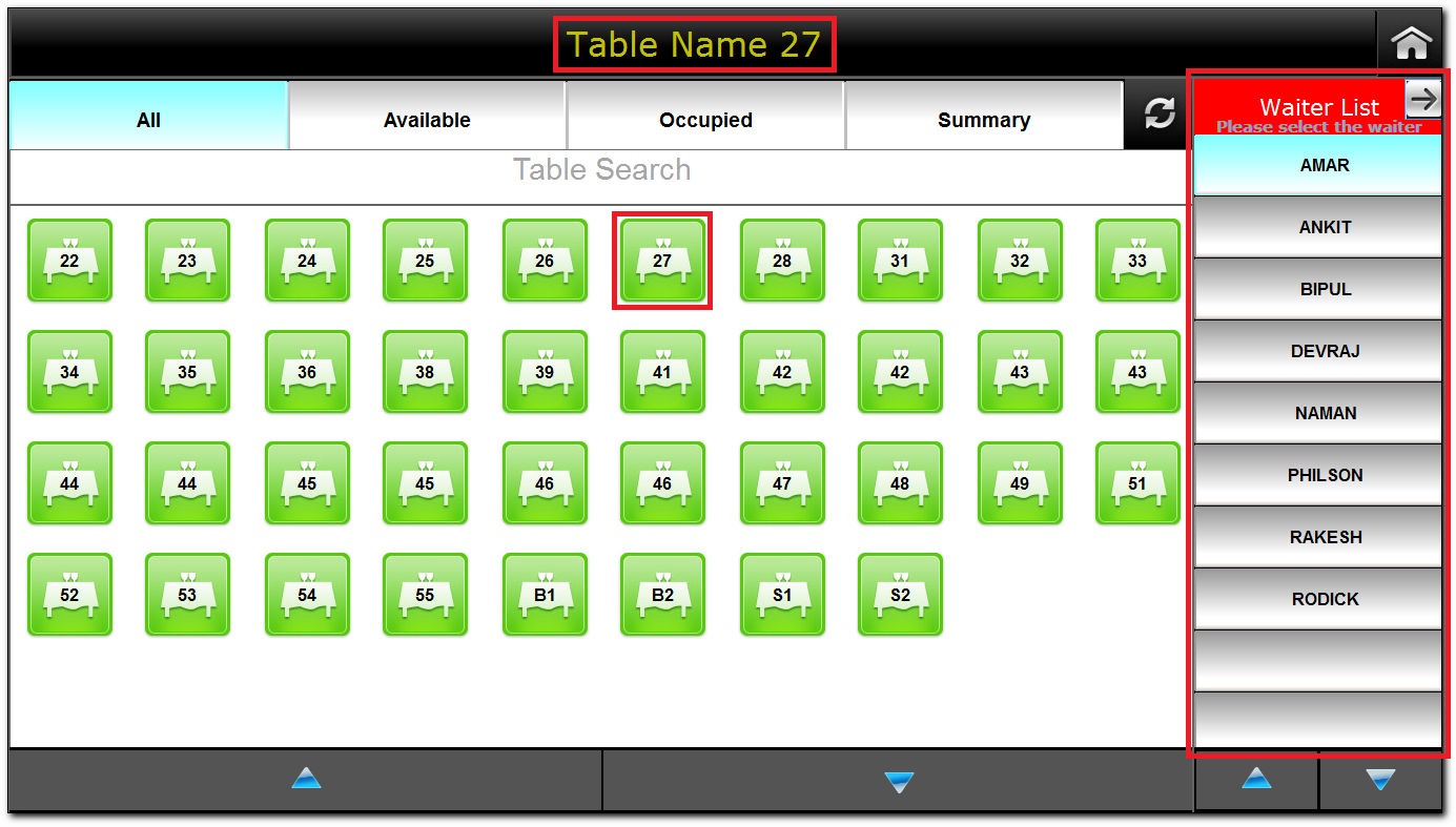 3. The Waiter List is displayed.