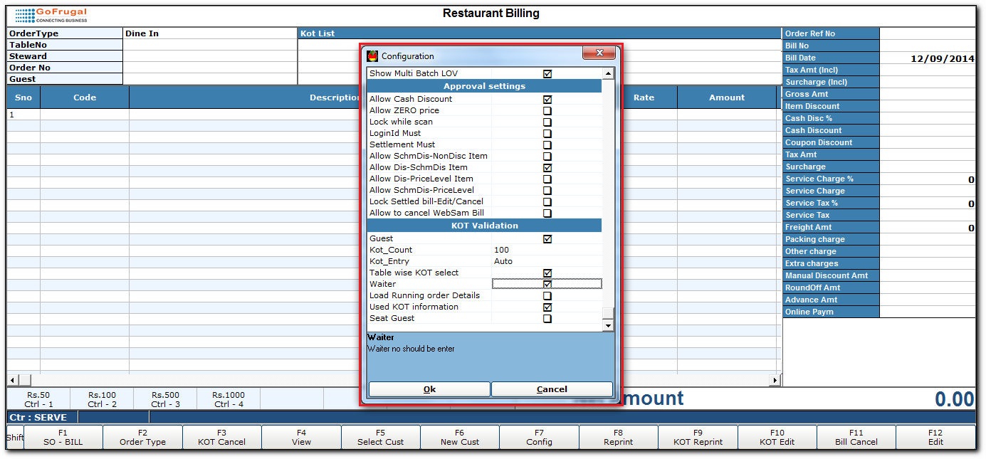 Steps for punching a KOT Waiter mandatory