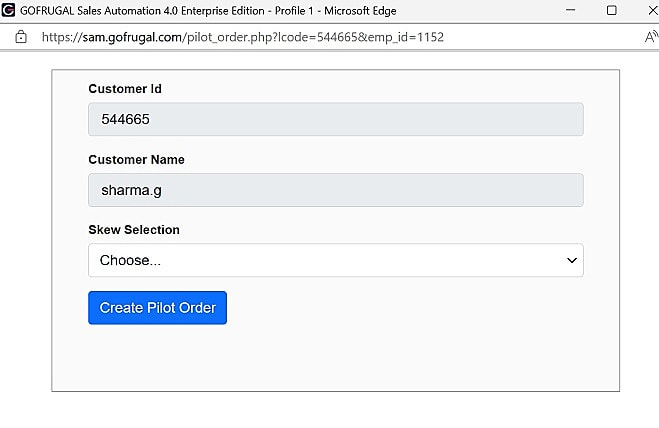 Step 2: The Pilot order window will be displayed as shown below. Here, Click on Choose button under Skew Selection--->The skew will be listed. There check for GoSure Stock Take or GoSure Stock Pick or GRN, GoSure Stock Refill is not yet released for TruePOS.