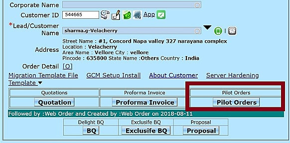 Step 4: Once you click on Create Pilot Order, you will receive the message as Order Created Successfully, click ok in that mesage.