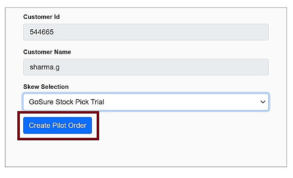 Step 3: Once you select the skew for GoSure, Click on Create Pilot Order to activate trial.