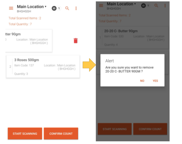 Step 7: You can delete an item, by swiping the particular item towards the left of the screen and clicking 'Yes' on the confirmation screen.