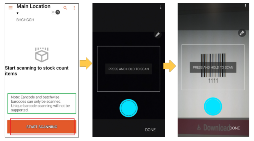 Step 1: In the StockTake module of GoSure, click on 'Start Scanning' to scan EAN codes.