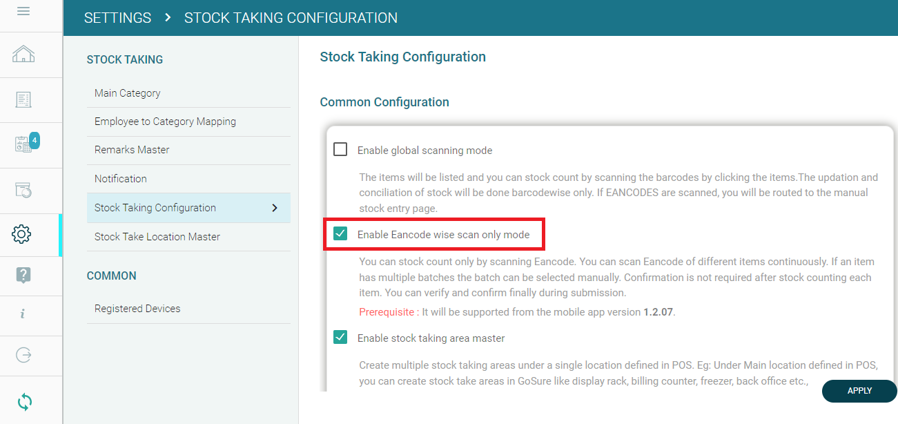 Note: To scan EAN codes and batch-wise codes, click on the check box 'Enable Eancode wise scan only mode'