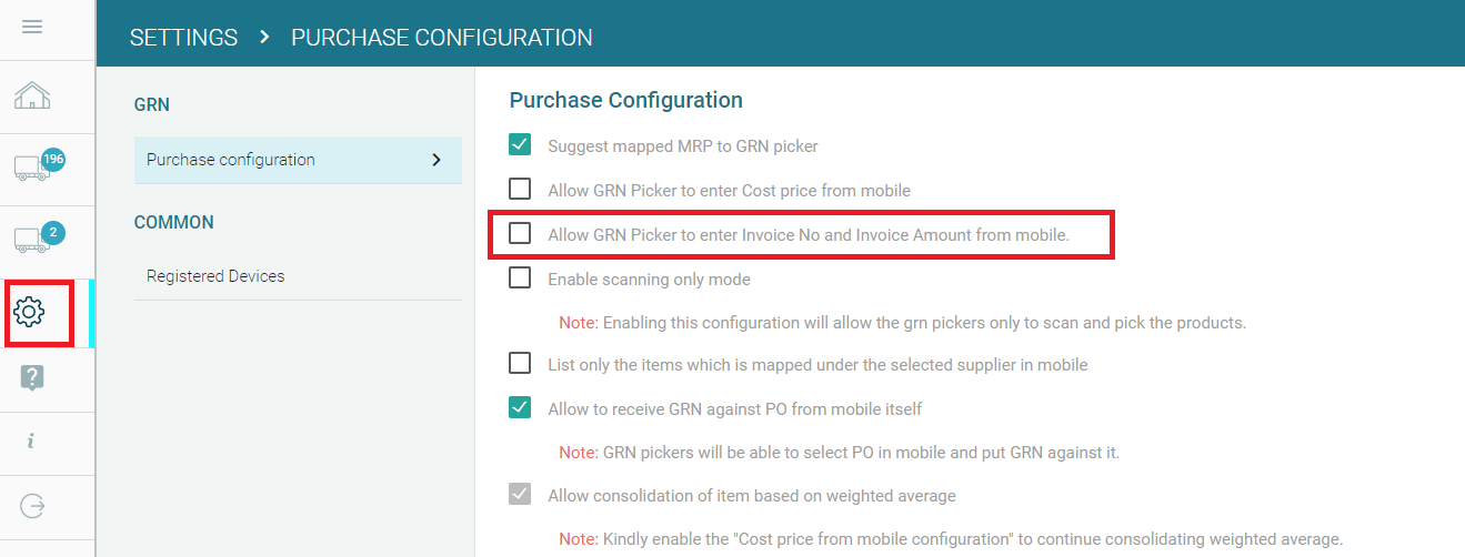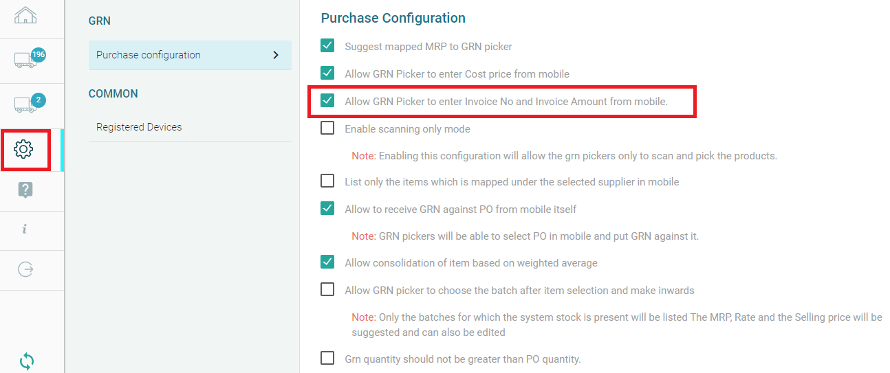 Step 1: Enable "Allow GRN Picker to enter Invoice No and Invoice Amount from mobile" in the GoSure web-app.