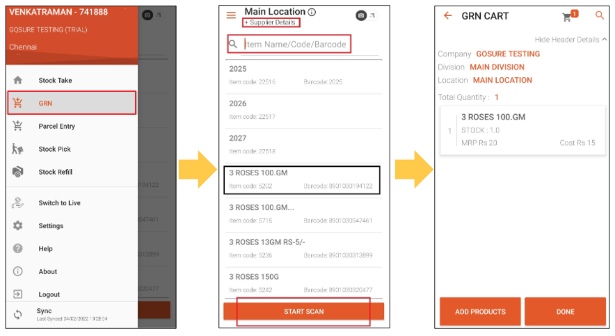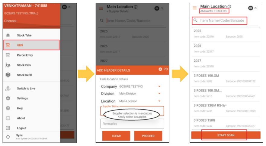 Step 3: After entering the Supplier details, you will have full control to browse through the GRN app.