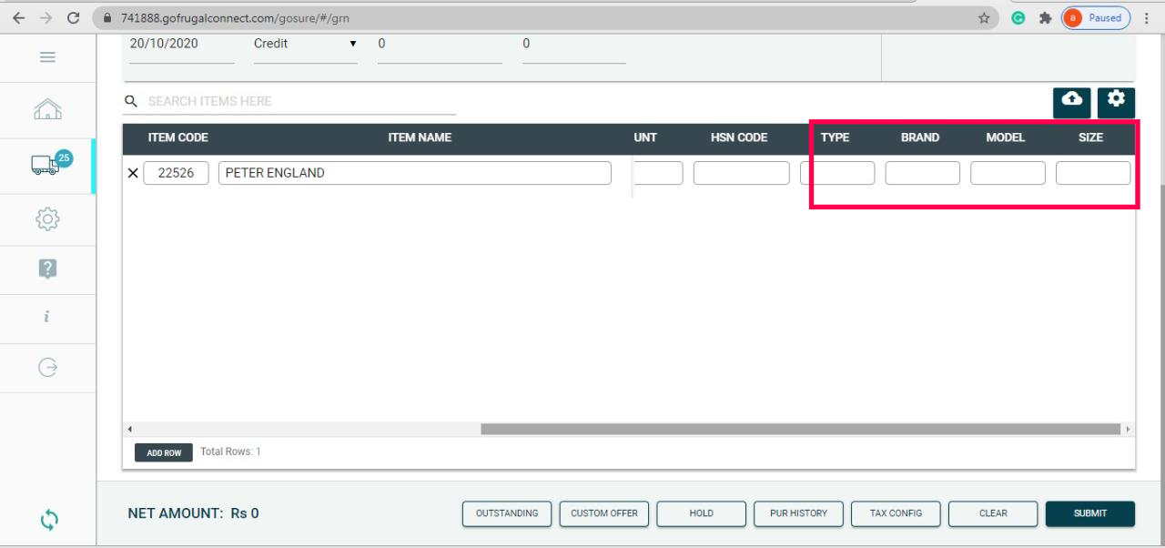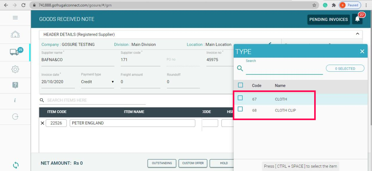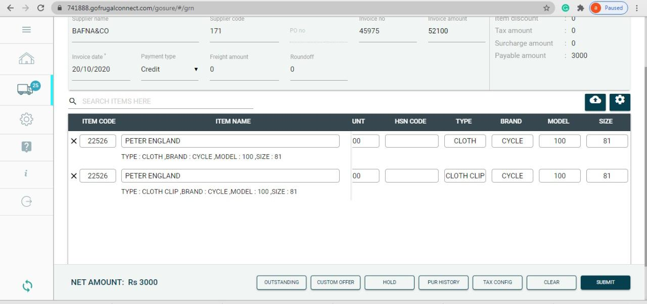 - Finally, check if all the details are entered and click on "SAVE", to submit the GRN from the web application.