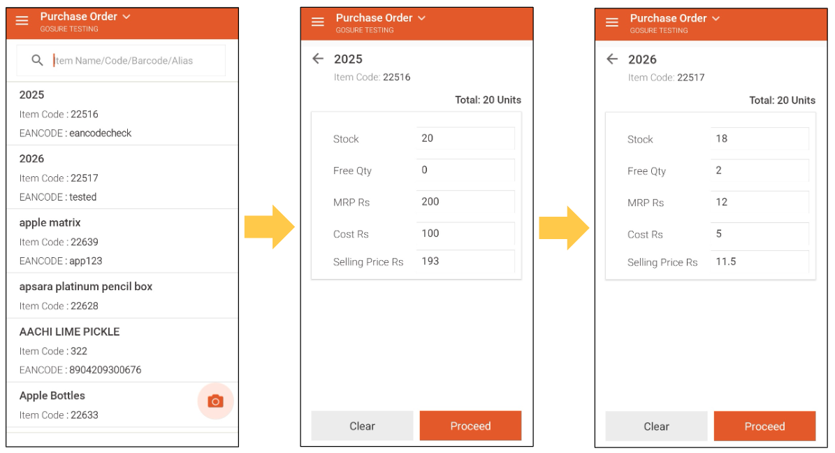 Purchase Orders can be placed from anywhere and at anytime, at your convenience using the GoSure GRN application, saving much amount of time, efforts and providing peace of mind to make purchases even without being physically present in the store.
