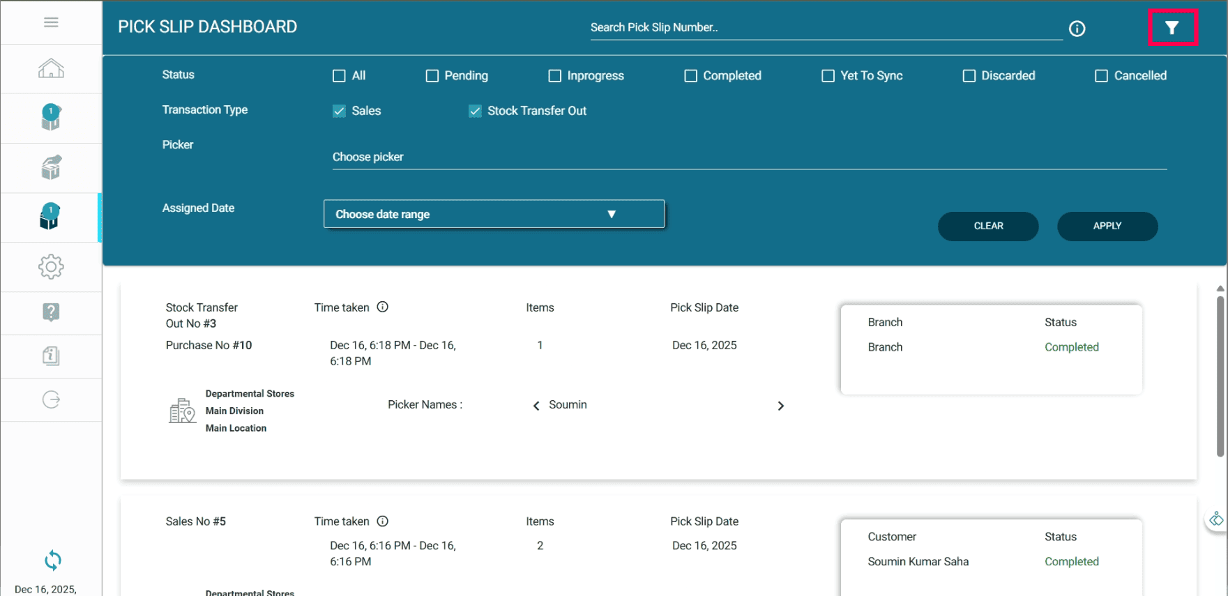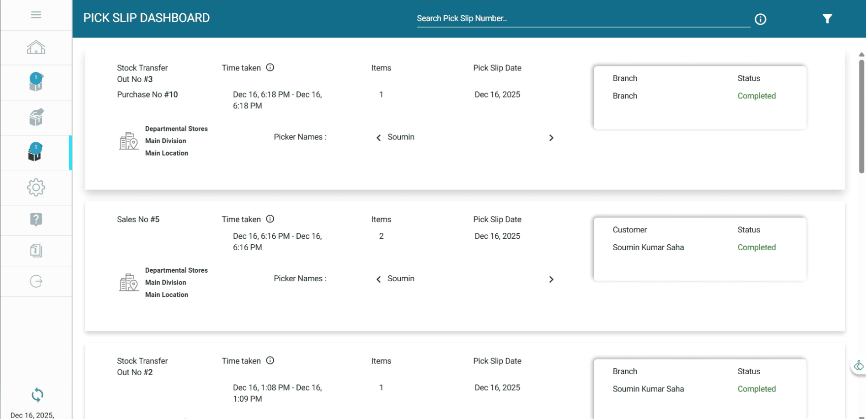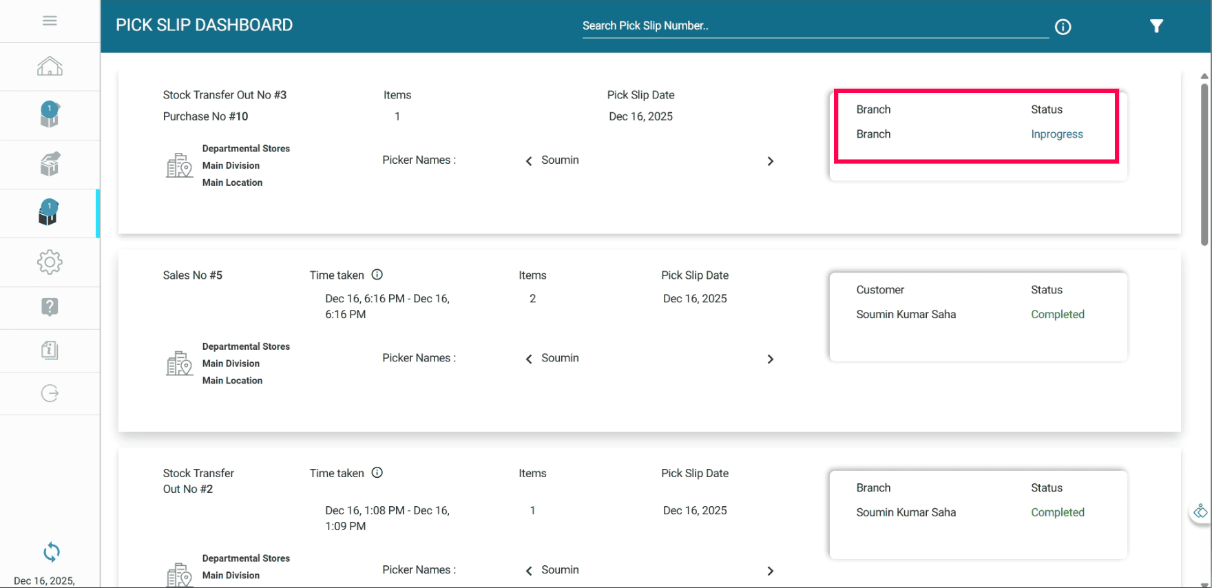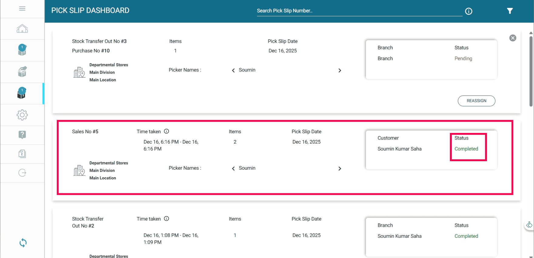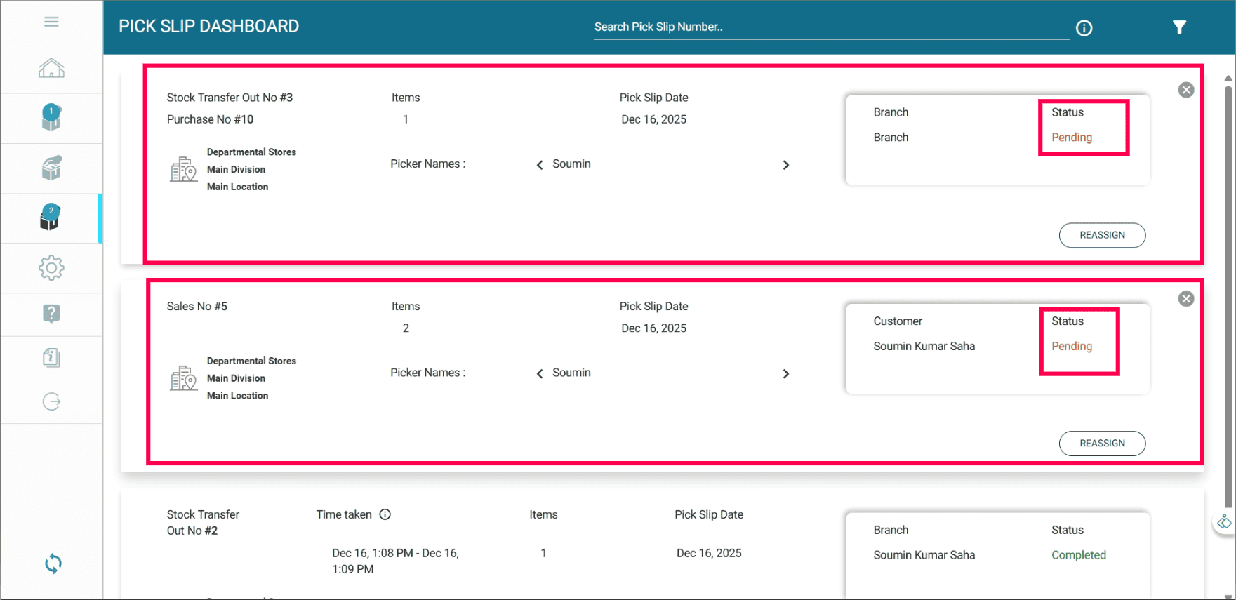 After opening the PICK SLIP DASHBOARD, you will see the status is Pending.
