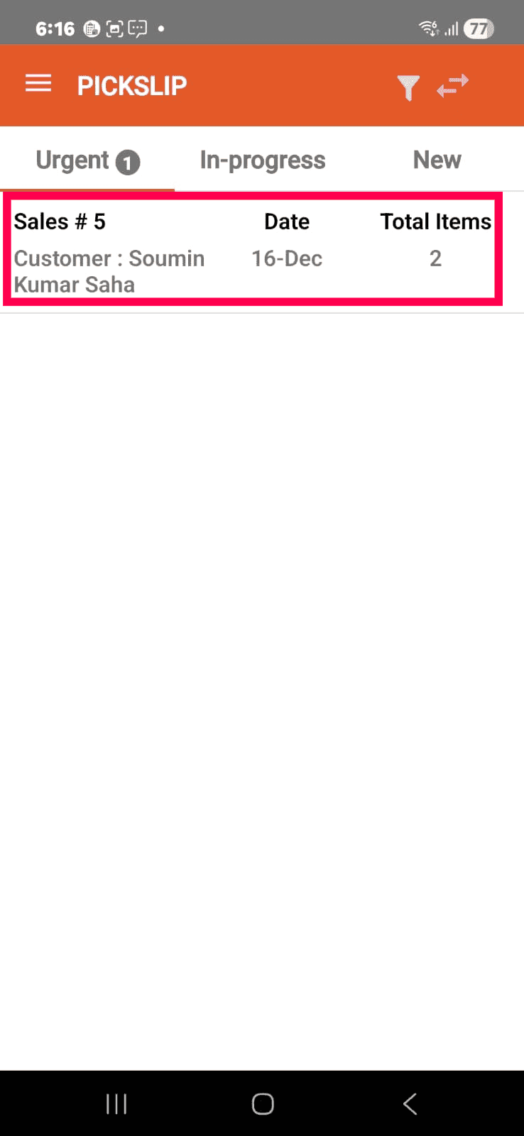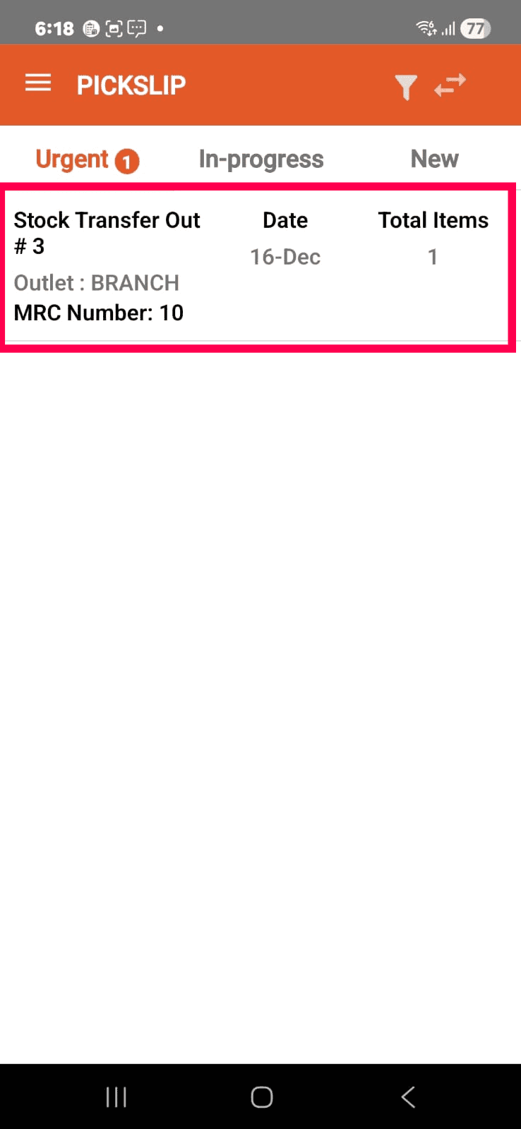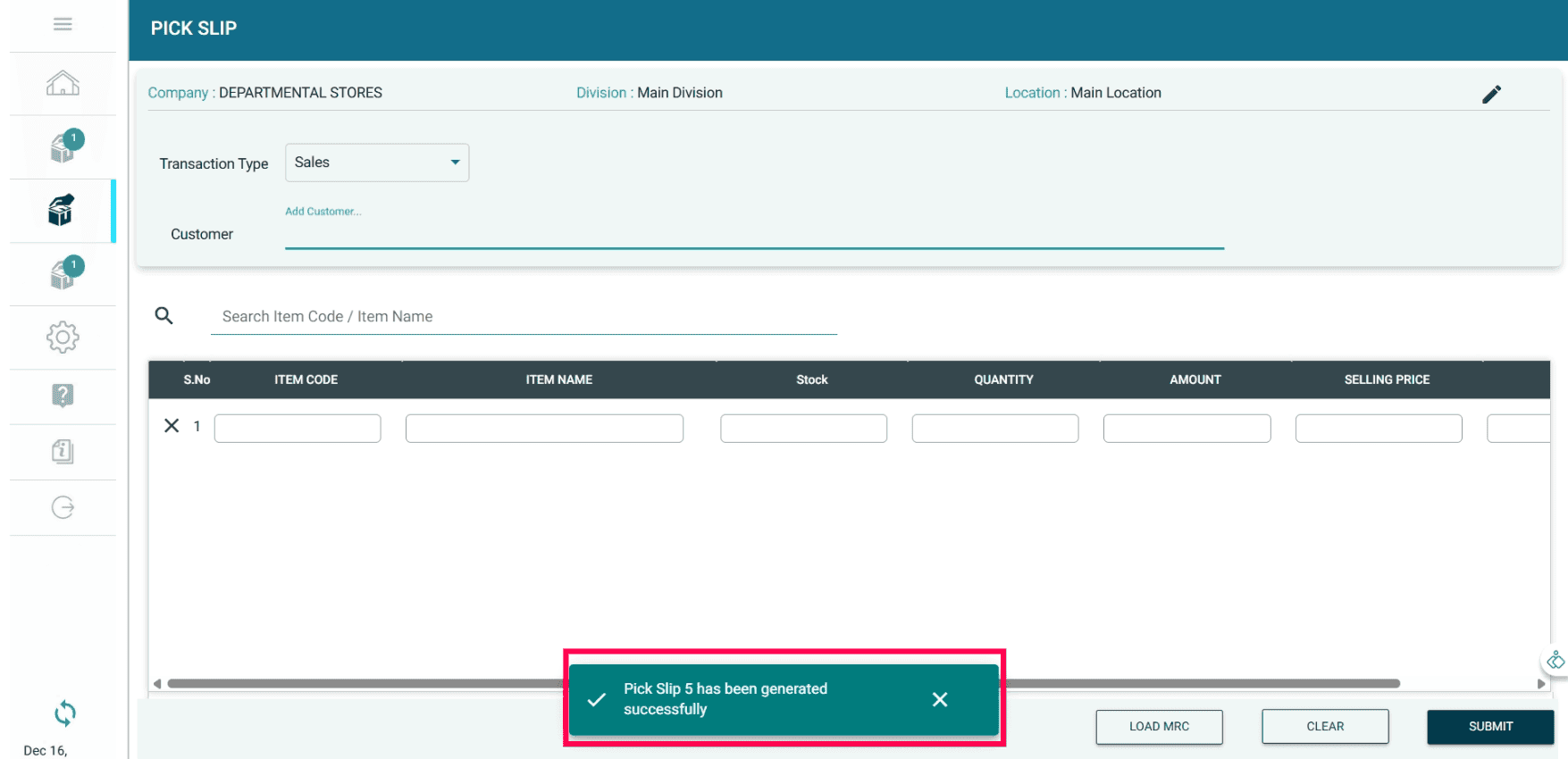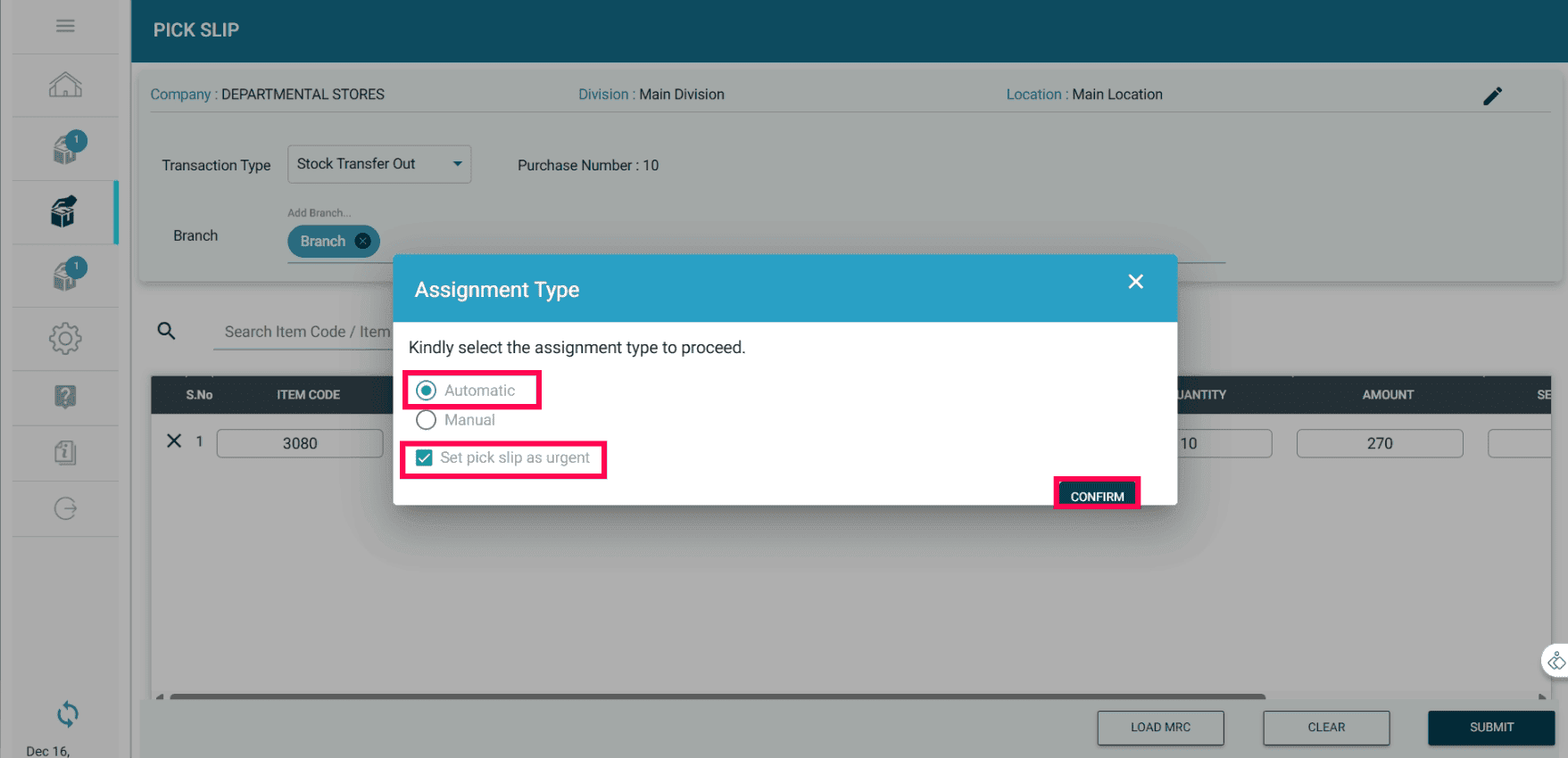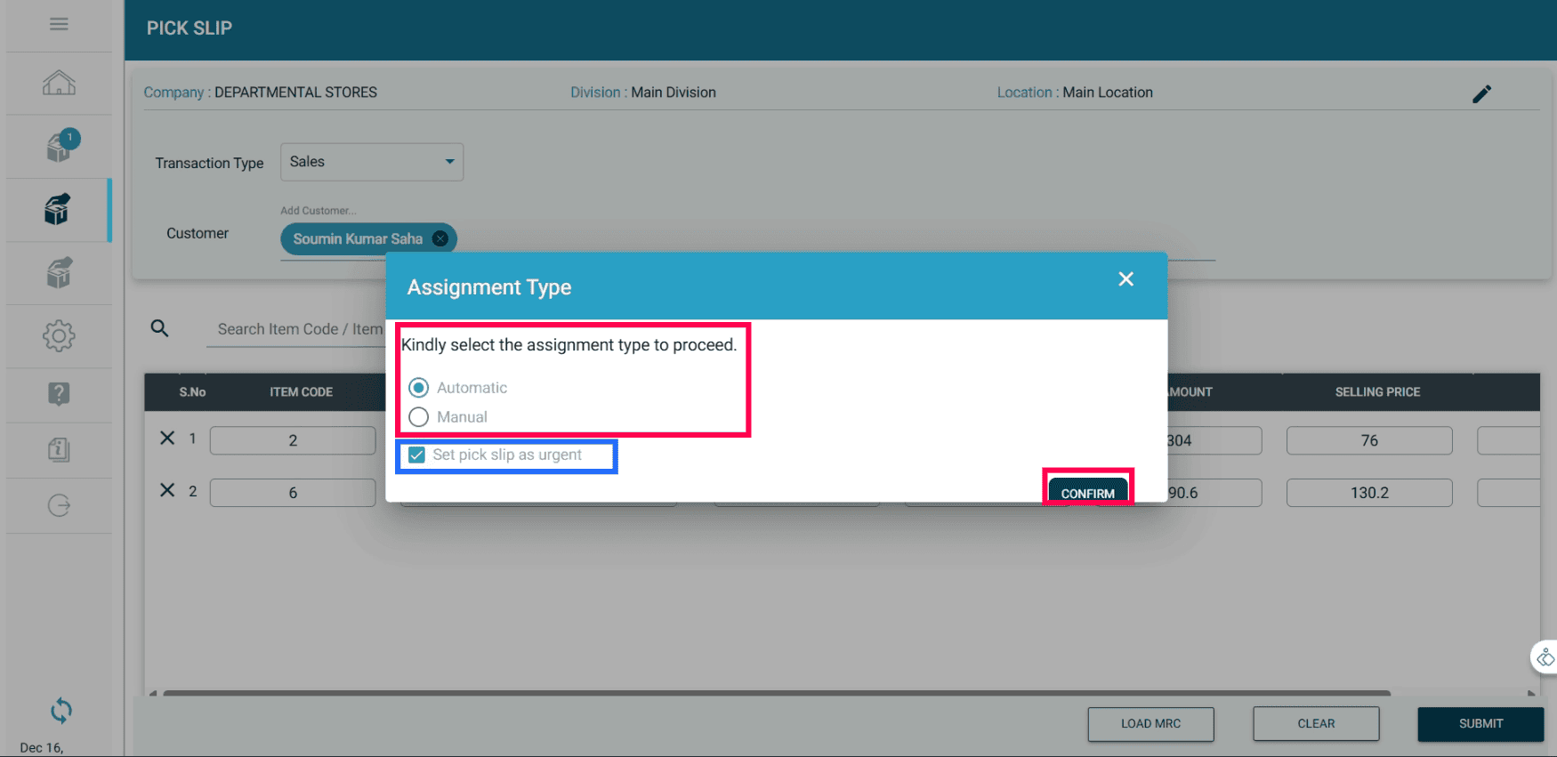 Note: You can set the pick slip as Urgent as well by ticking the checkbox shown in the screenshot.