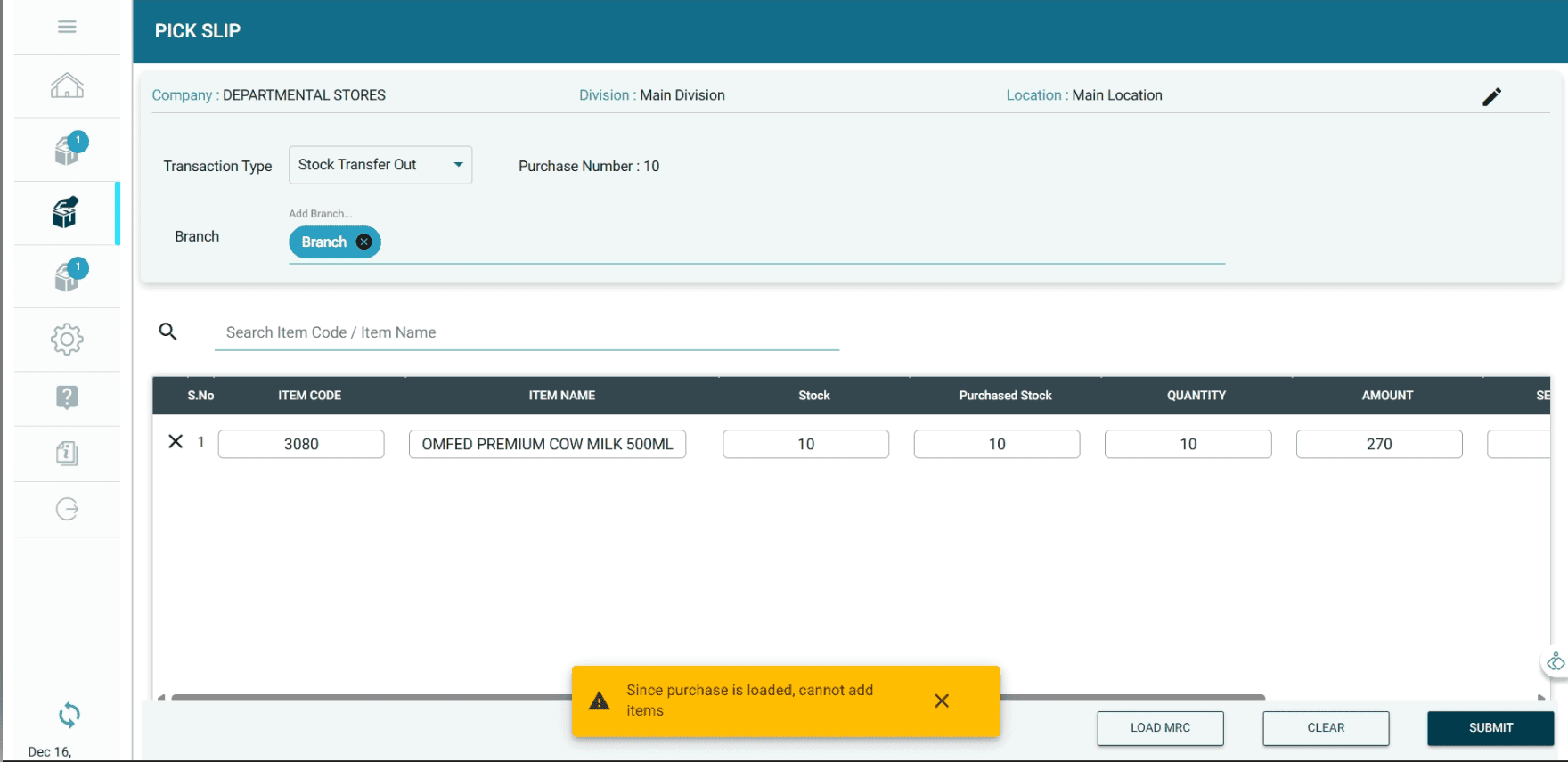 Note: The system will not allow you to add more items after you have loaded a purchase using LOAD MRC. See the below screenshot for your reference.