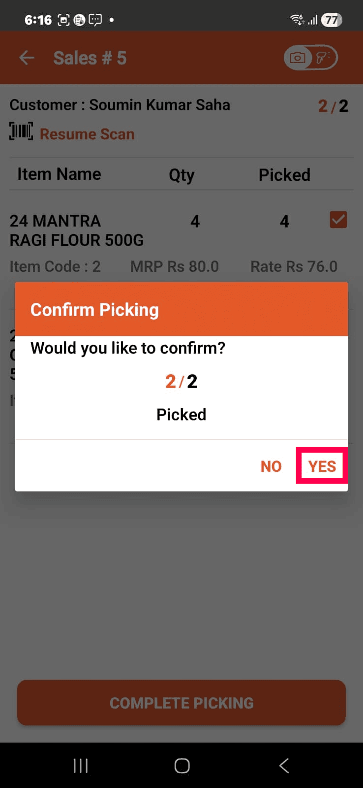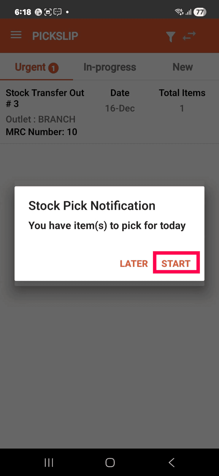 Tap the new notification on the Sales Order screen of the GoSure Stock Pick app.