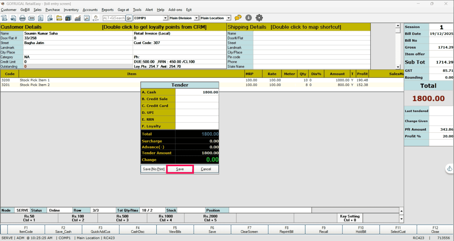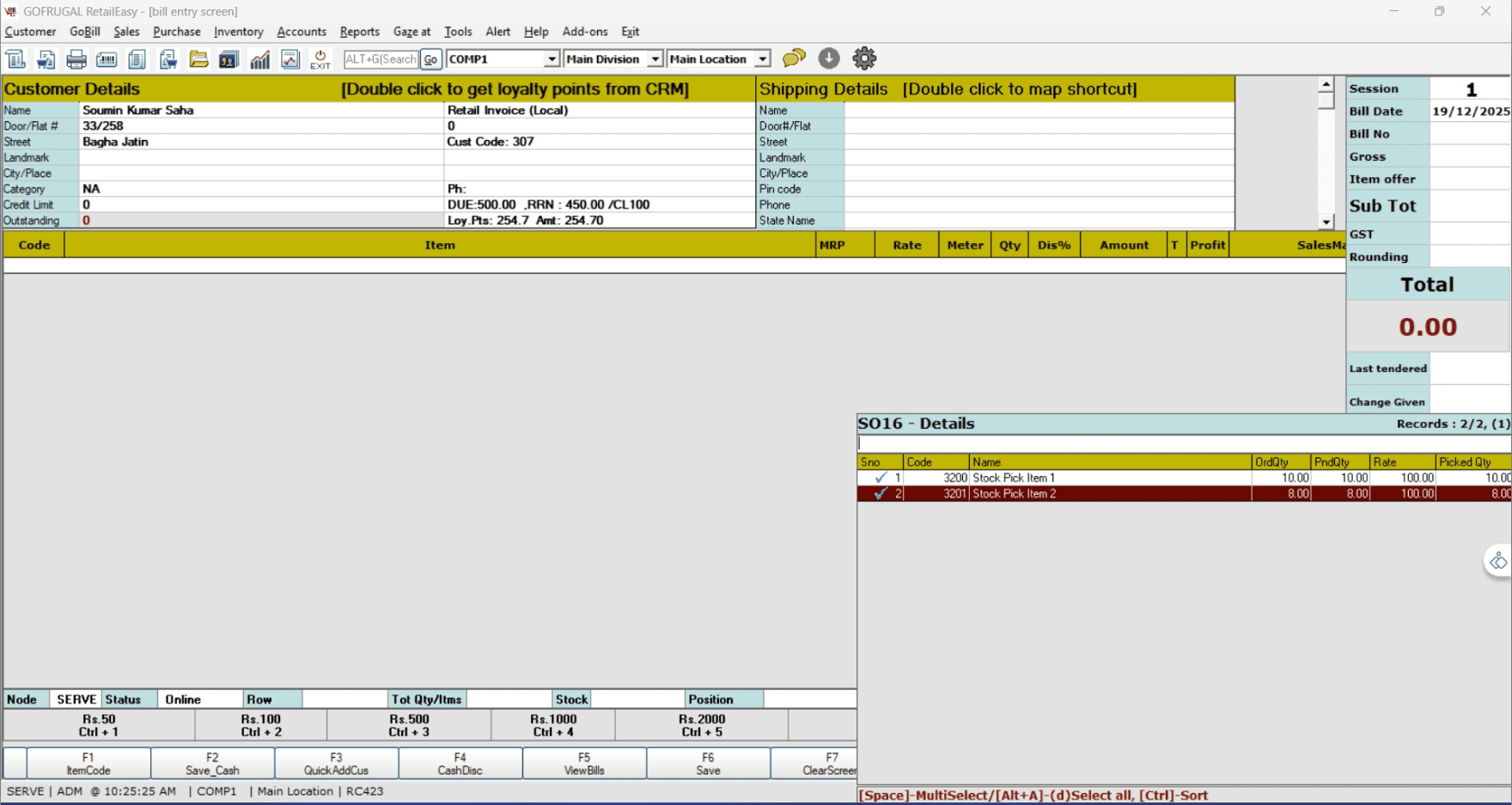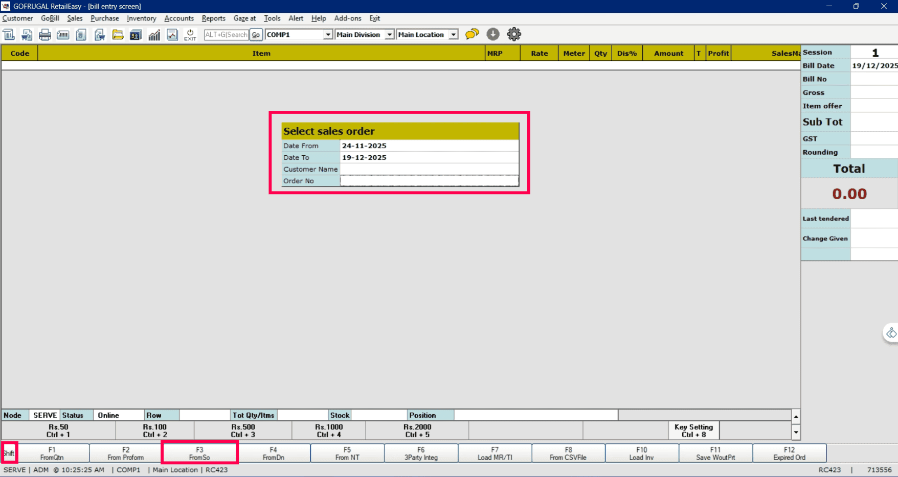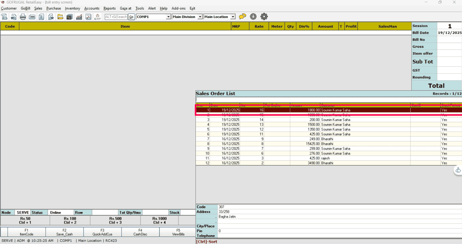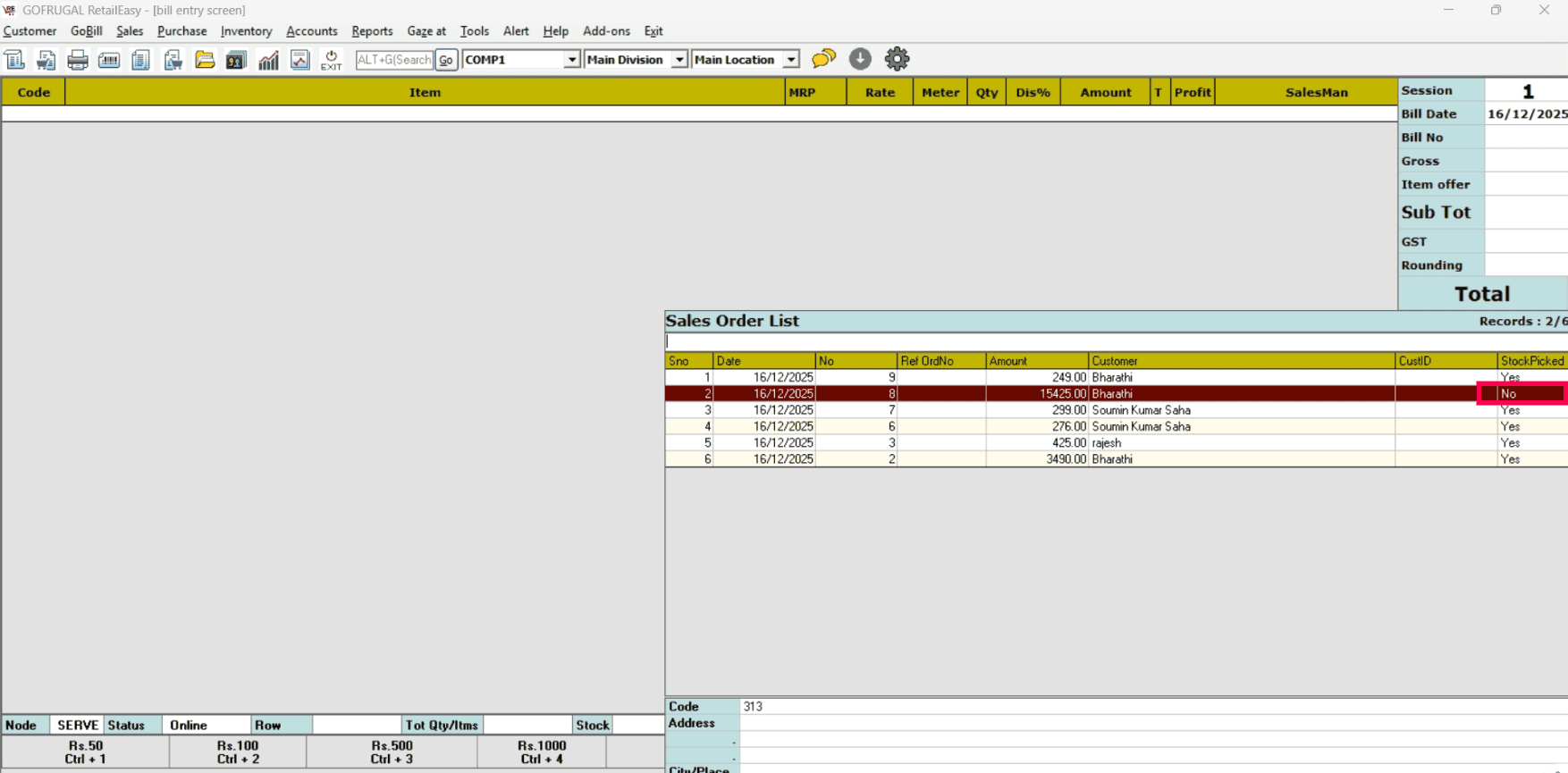 Open RetailEasy and navigate to Sales > Sales Bill.