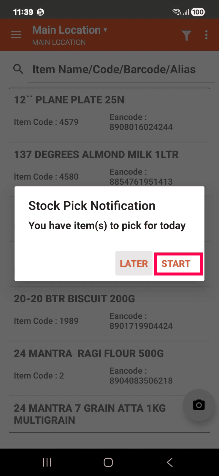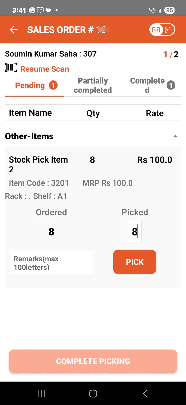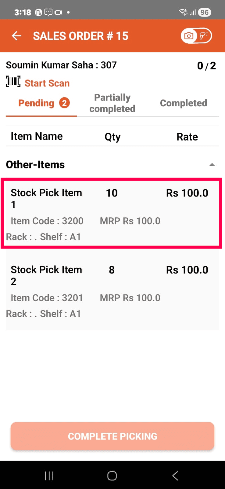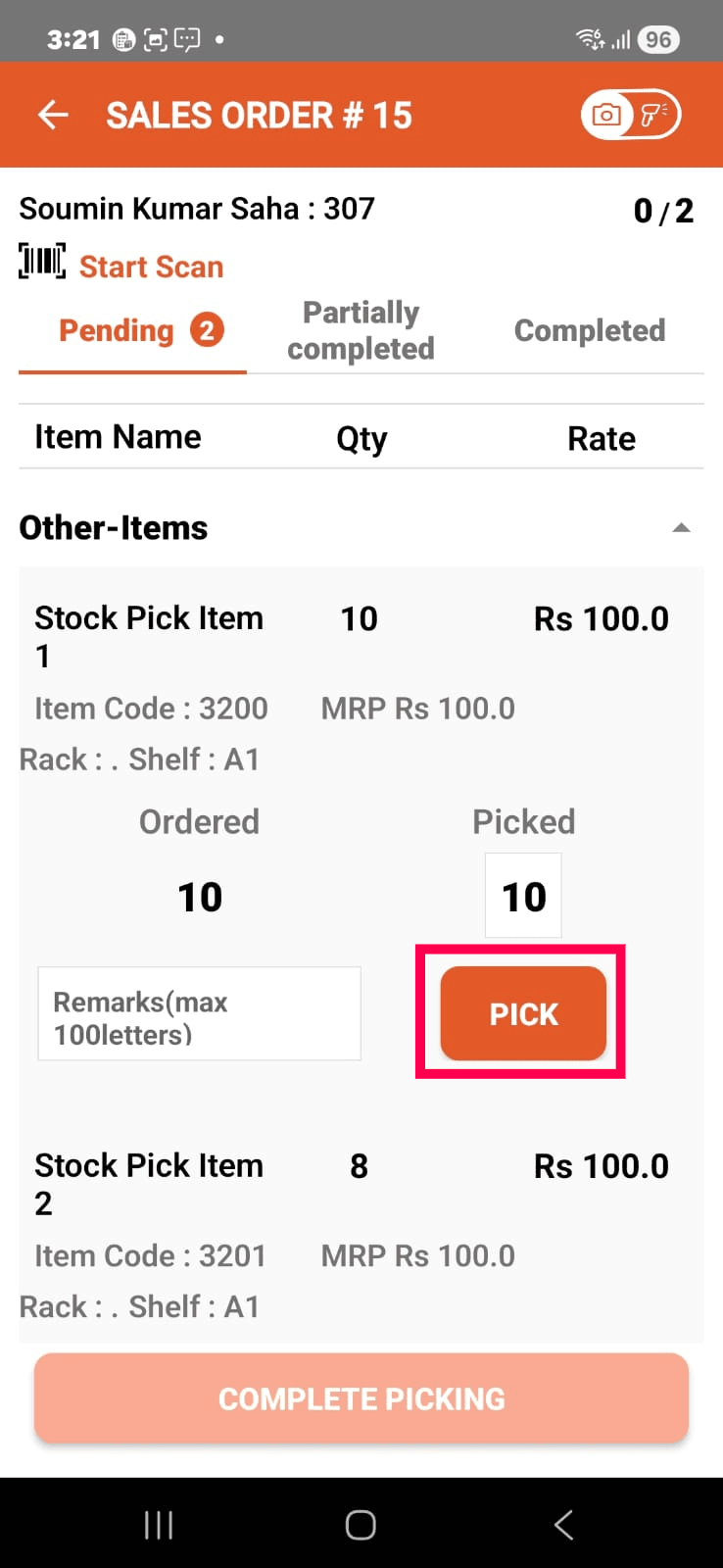 Tap the COMPLETE PICKING button.
