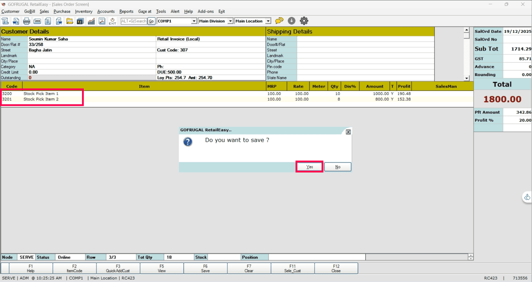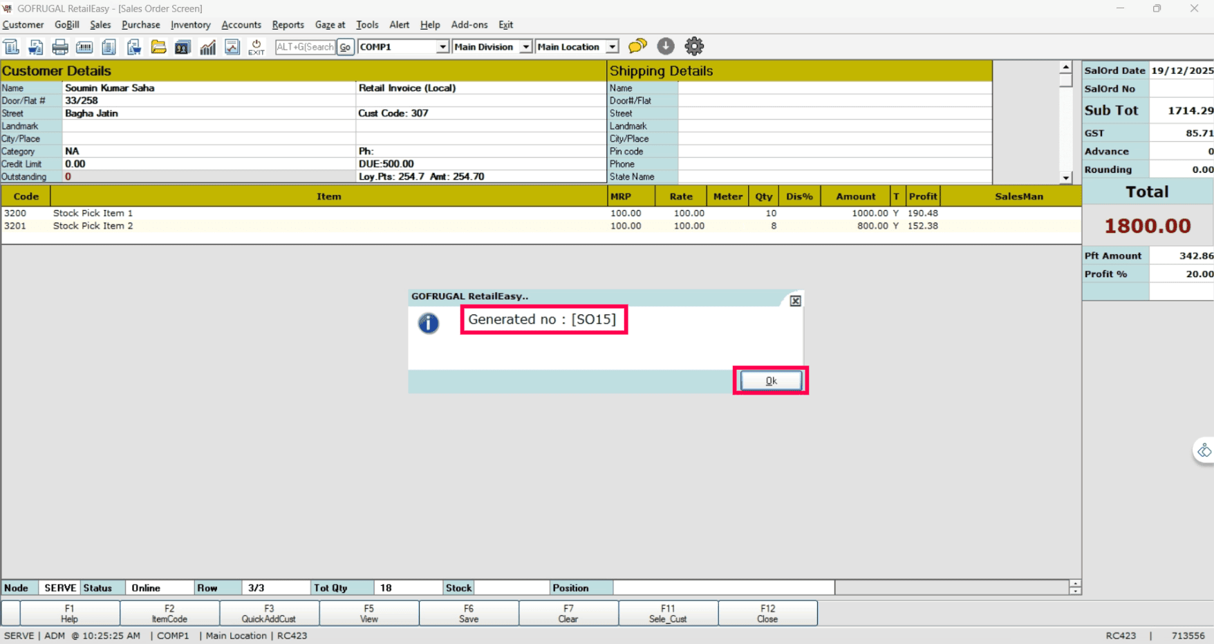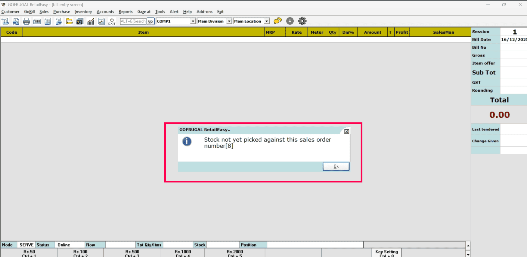 If you have selected the non-picked SO, the following error message will appear.