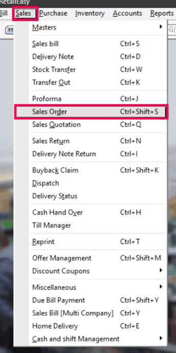 Open RetailEasy and navigate to Sales > Sales Order.