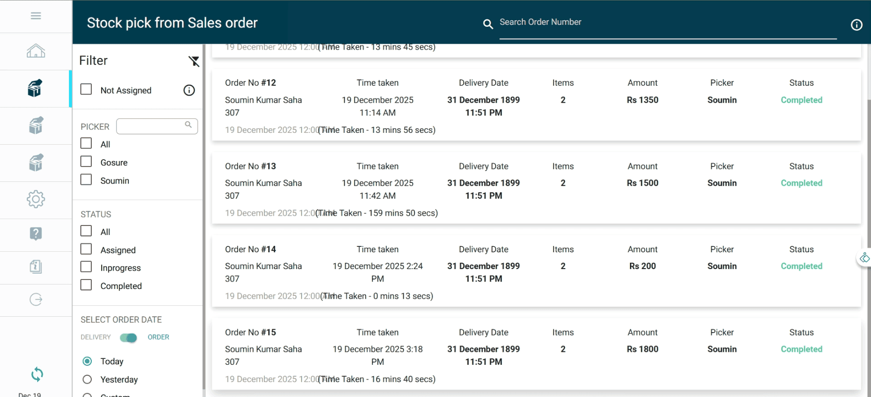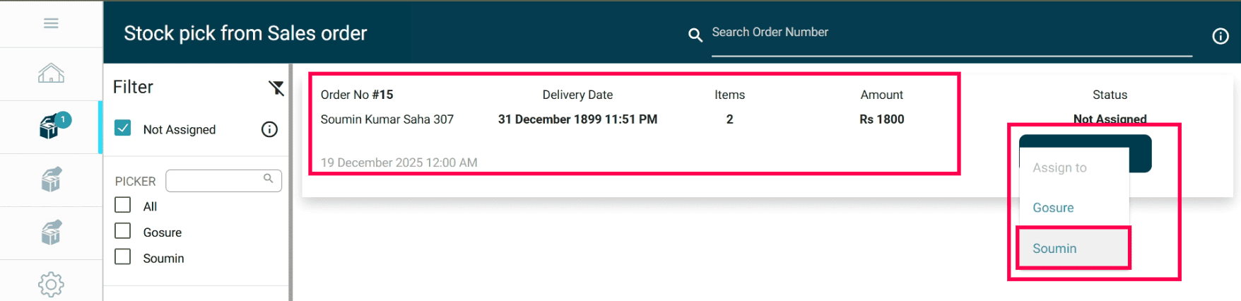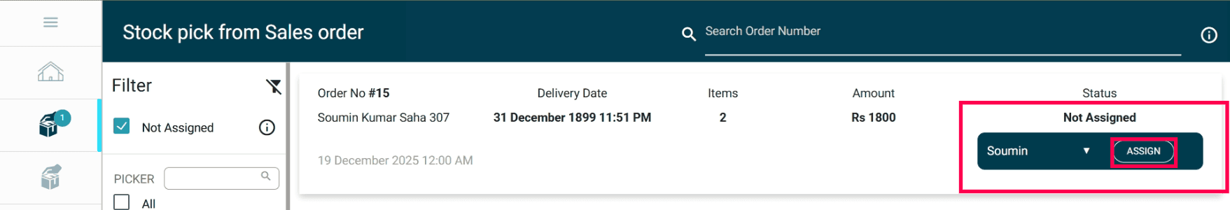 Click the Stock Pick from Sales Order icon in the top-left corner just under the home button.