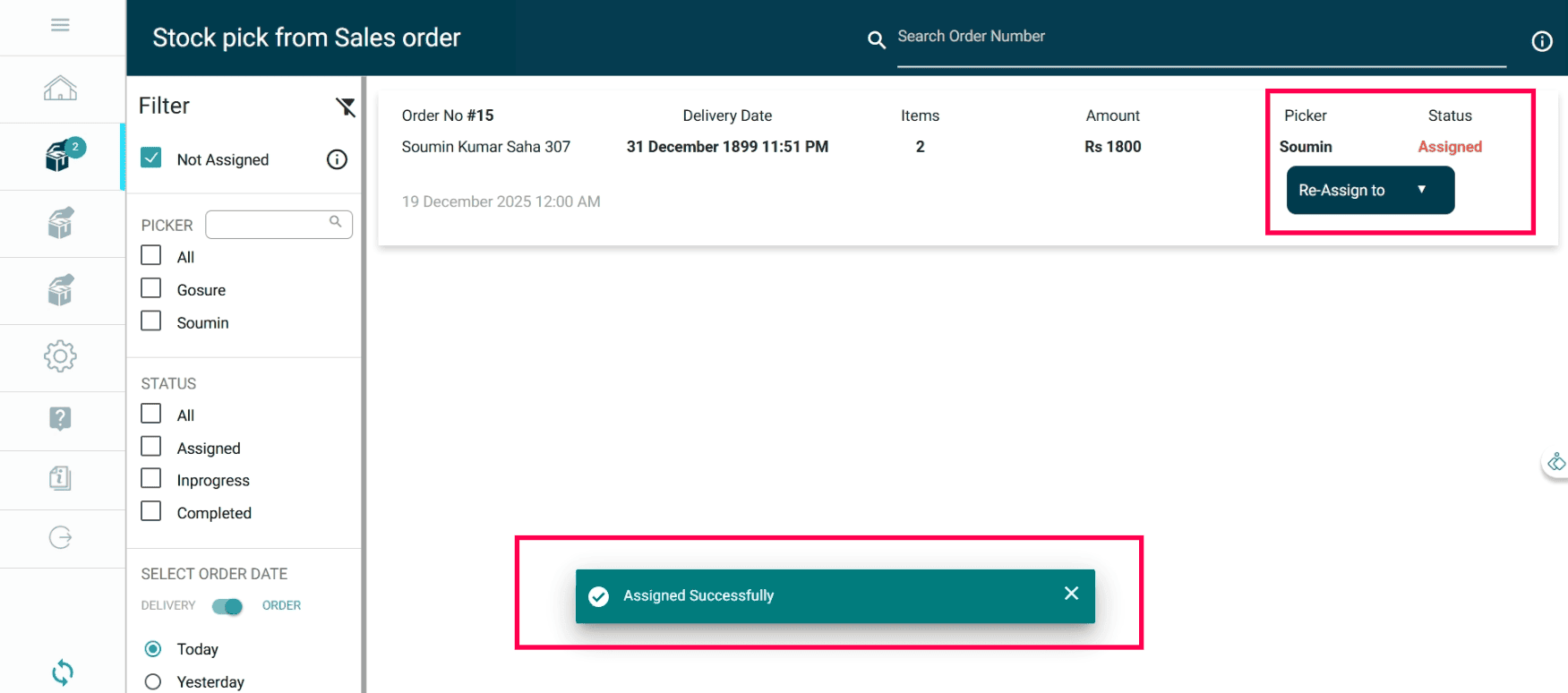 You will receive a notification of the sales order you received for picking.